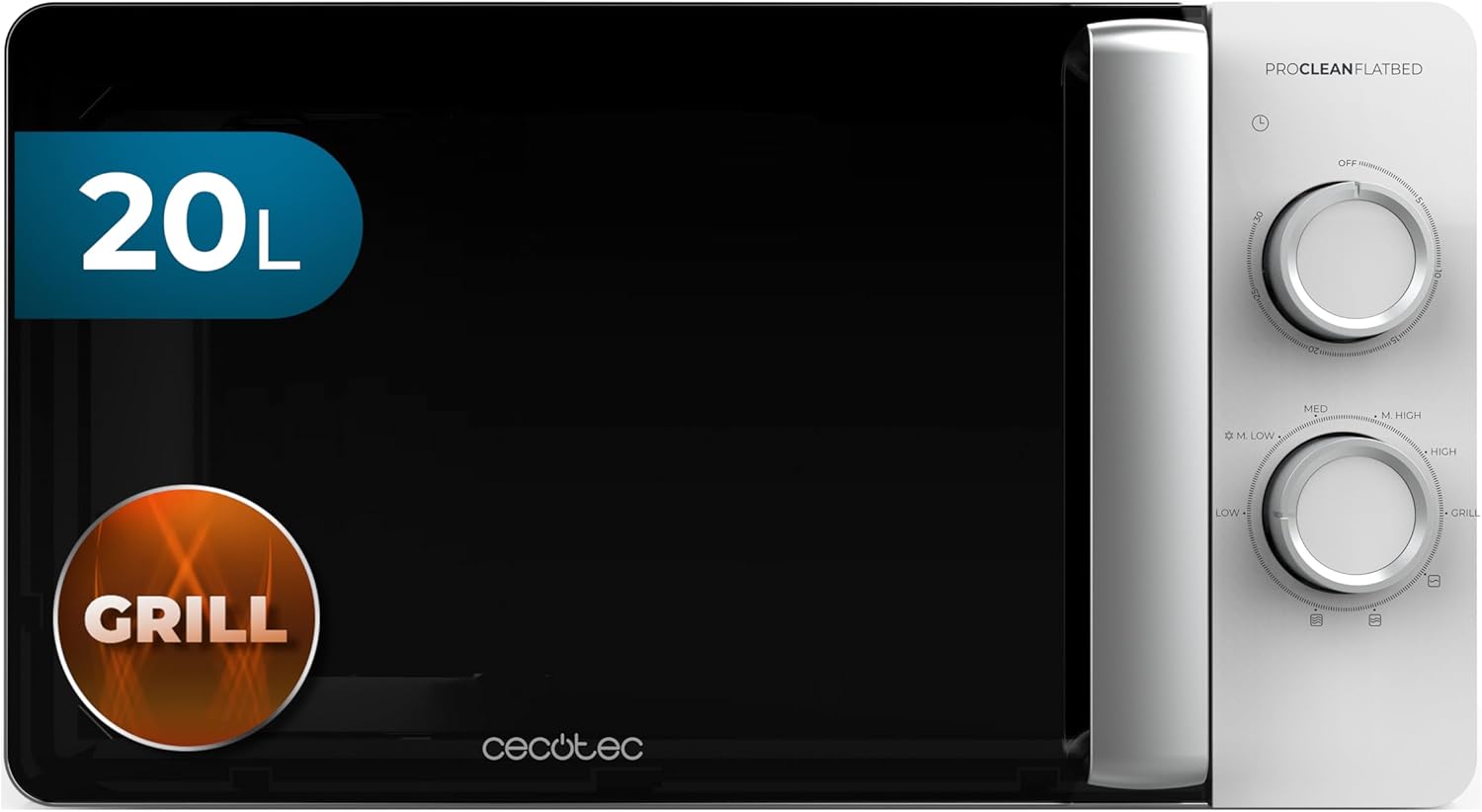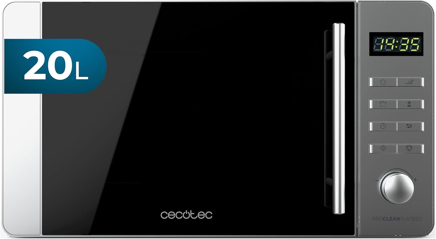 Микровълнова фурна Cecotec с грил Proclean 3010 с плоско дъно, 20 л, 700 W, 6 нива, плоска кухина за големи храни, компактен и модерен дизайн, с 3DWave технология за перфектно готвене
