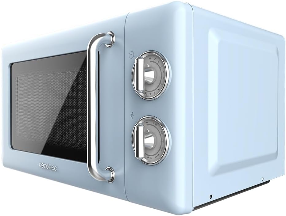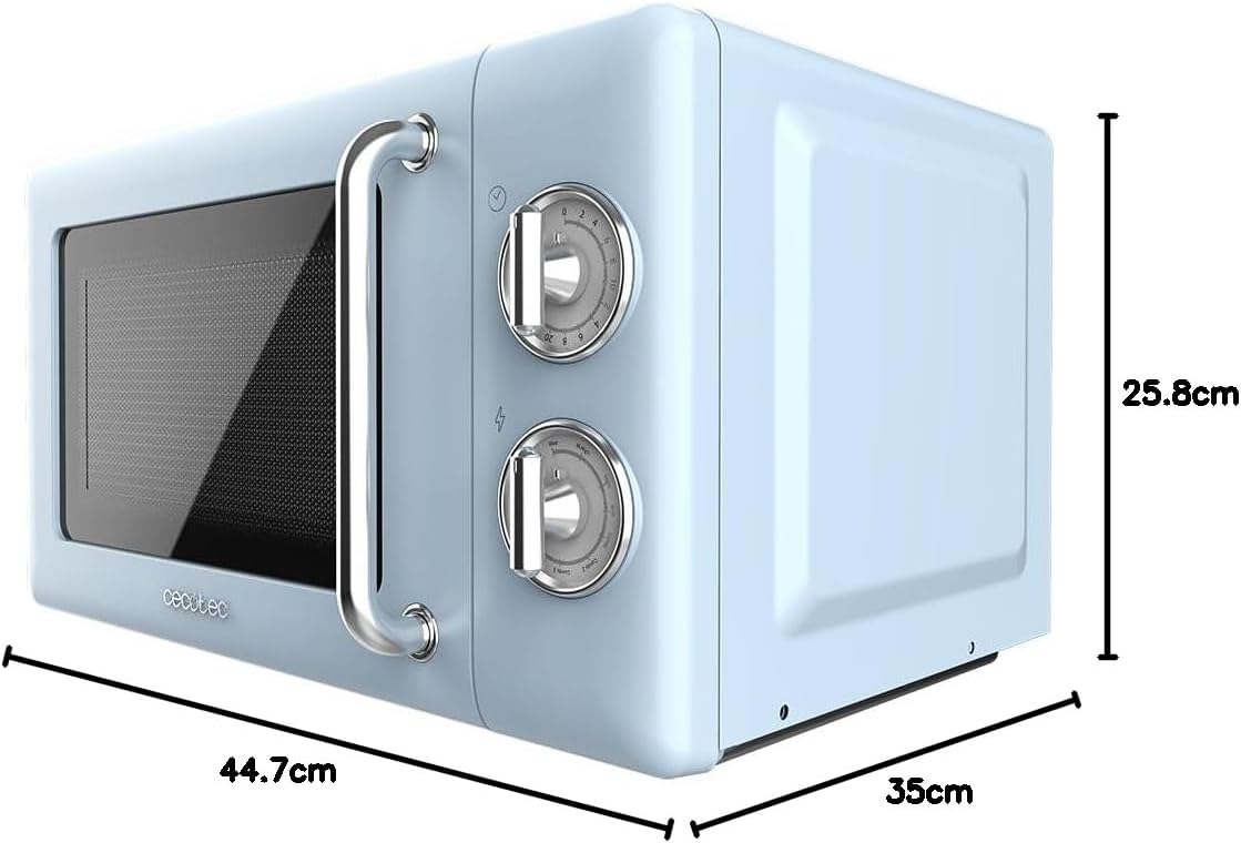 Микровълнова фурна Cecotec с грил Proclean 3110 Retro Blue, механична, 700 W на 6 нива, таймер до 30 минути, режим на размразяване, винтидж дизайн в синьо, стоманено покритие