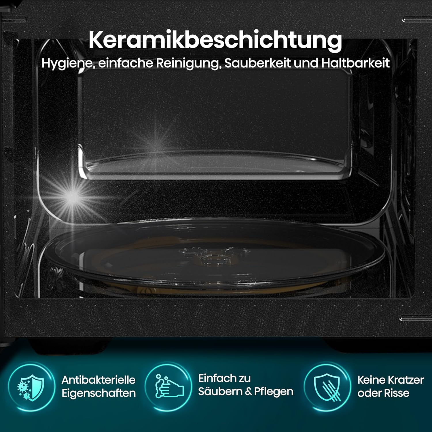 • КЕРАМИЧНО ПОКРИТИЕ Вътрешността на тази микровълнова фурна Hisense е изцяло покрита с керамика, което предлага редица предимства. Тя осигурява здрава повърхност, която никога няма да се надраска или напука. Не става лепкава след загряване на храната, лесна е за почистване и придава на продукта висококачествен външен вид и усещане. Такава повърхност има и антибактериални свойства, които предотвратяват всякакви бактериални атаки.