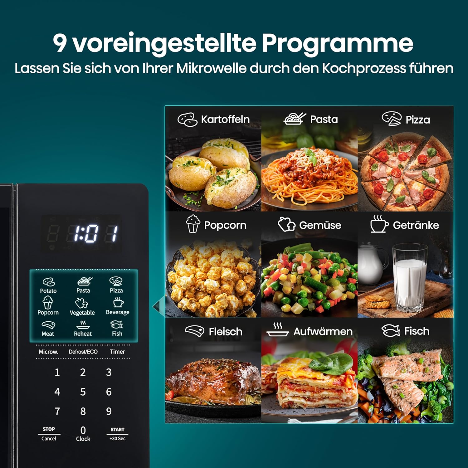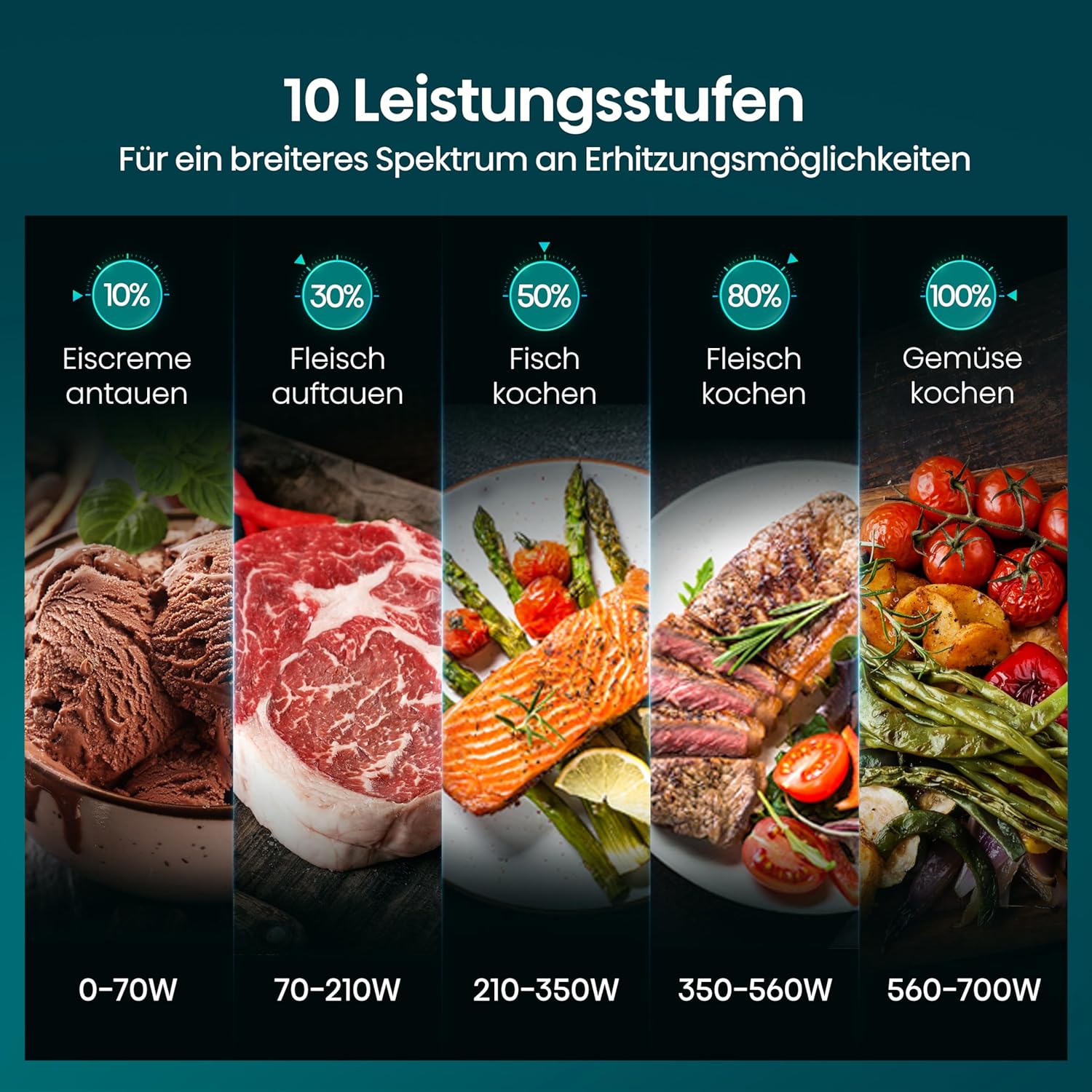 • ИНДИВИДУАЛНО ГОТВЕНЕ - С тази микровълнова фурна можете да избирате различни нива на мощност и настройки на времето, за да имате пълен контрол. Персонализираното готвене ви помага да постигнете желания резултат.