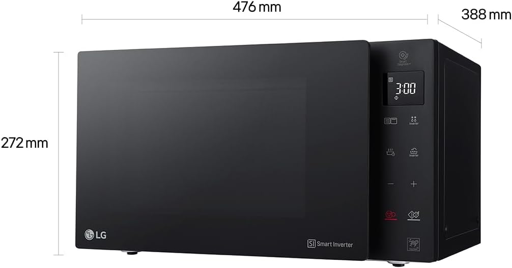 Микровълнова фурна LG MH6535GDS с грил и интелигентен инвертор, 25 л, 1000 W микровълнова фурна, 900 W грил, автоматични програми, лесно почистване, черна