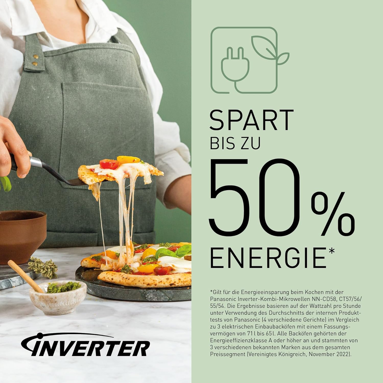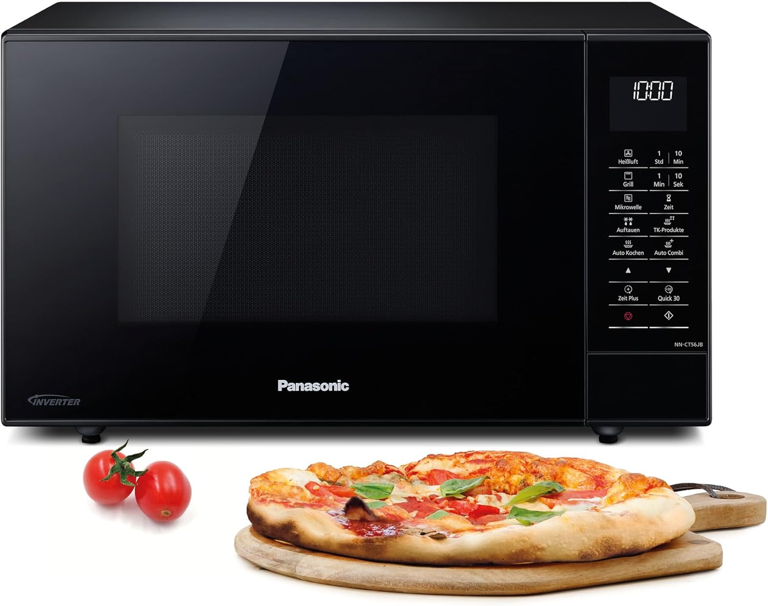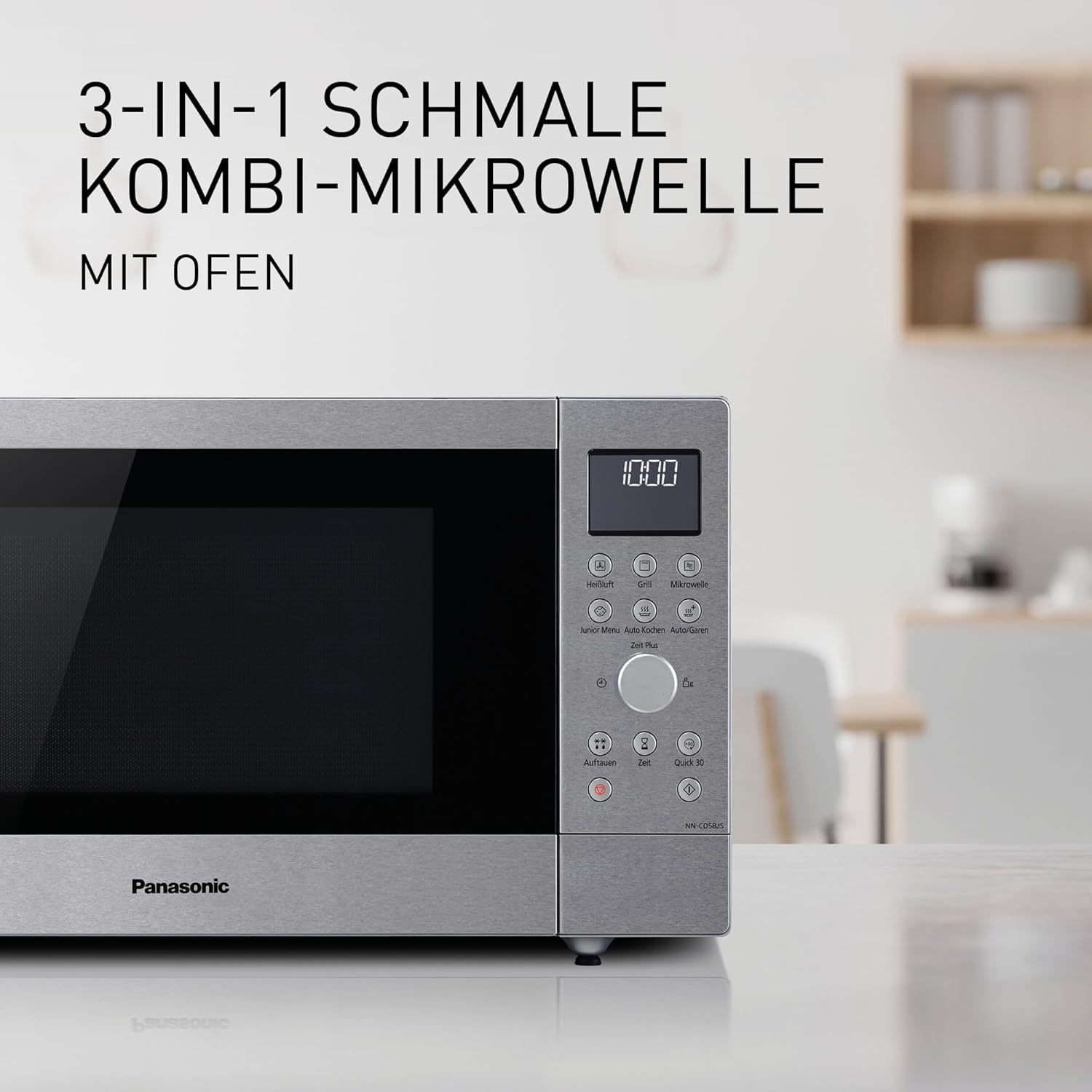 Микровълнова фурна Panasonic NN-CT56 с горещ въздух и грил, тънък дизайн (малка дълбочина), 1000 вата, защита от деца
