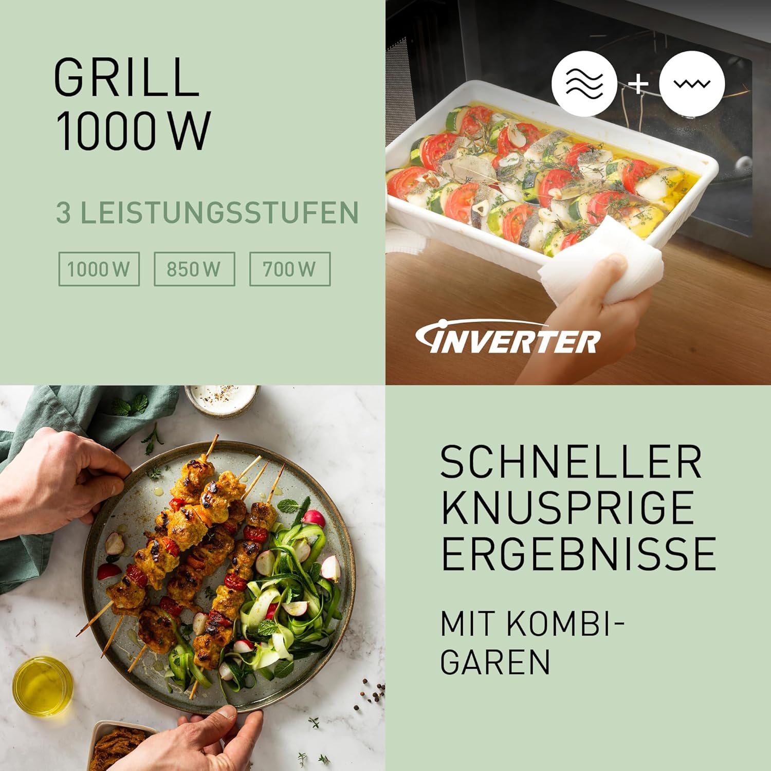 • Оптимална производителност при готвене: пригответе широка гама от ястия с тази компактна микровълнова печка, с над 7 нива на мощност до 1000 W и прецизен контрол, за оптимален вкус, консистенция и хранителни вещества.
