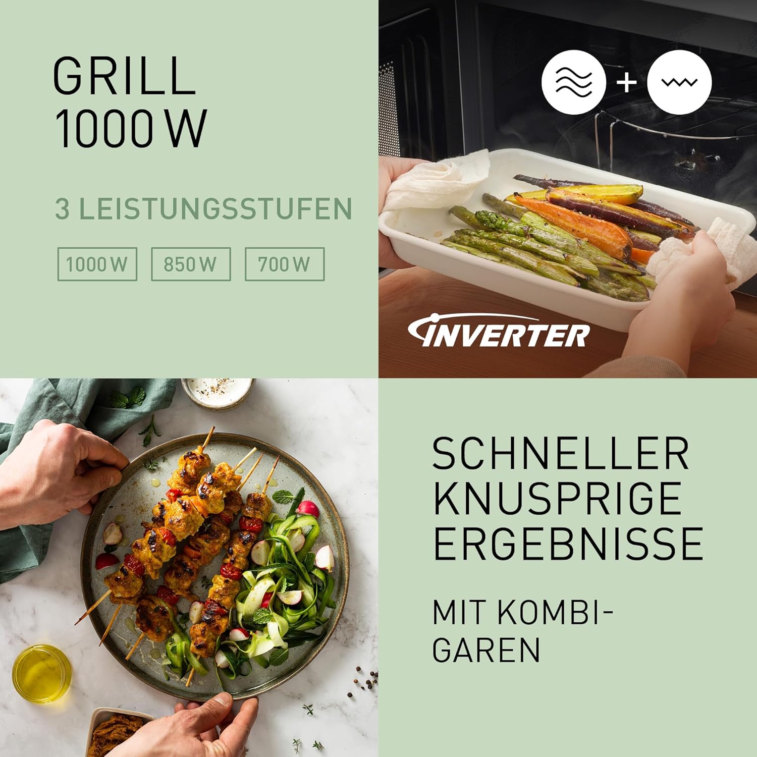 • Оптимална производителност при готвене: пригответе широка гама от ястия с тази компактна микровълнова печка, с над 7 нива на мощност до 1000 W и прецизен контрол, за оптимален вкус, консистенция и хранителни вещества.