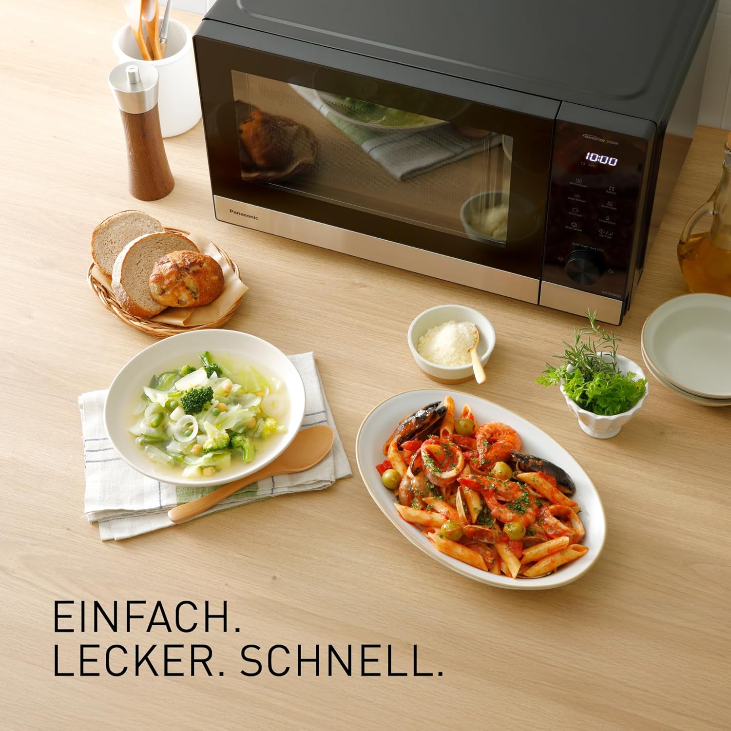 • Равномерно затопляне и размразяване: гответе храната внимателно, равномерно и прецизно благодарение на инверторната технология, която запазва хранителните вещества и предотвратява преливането.
