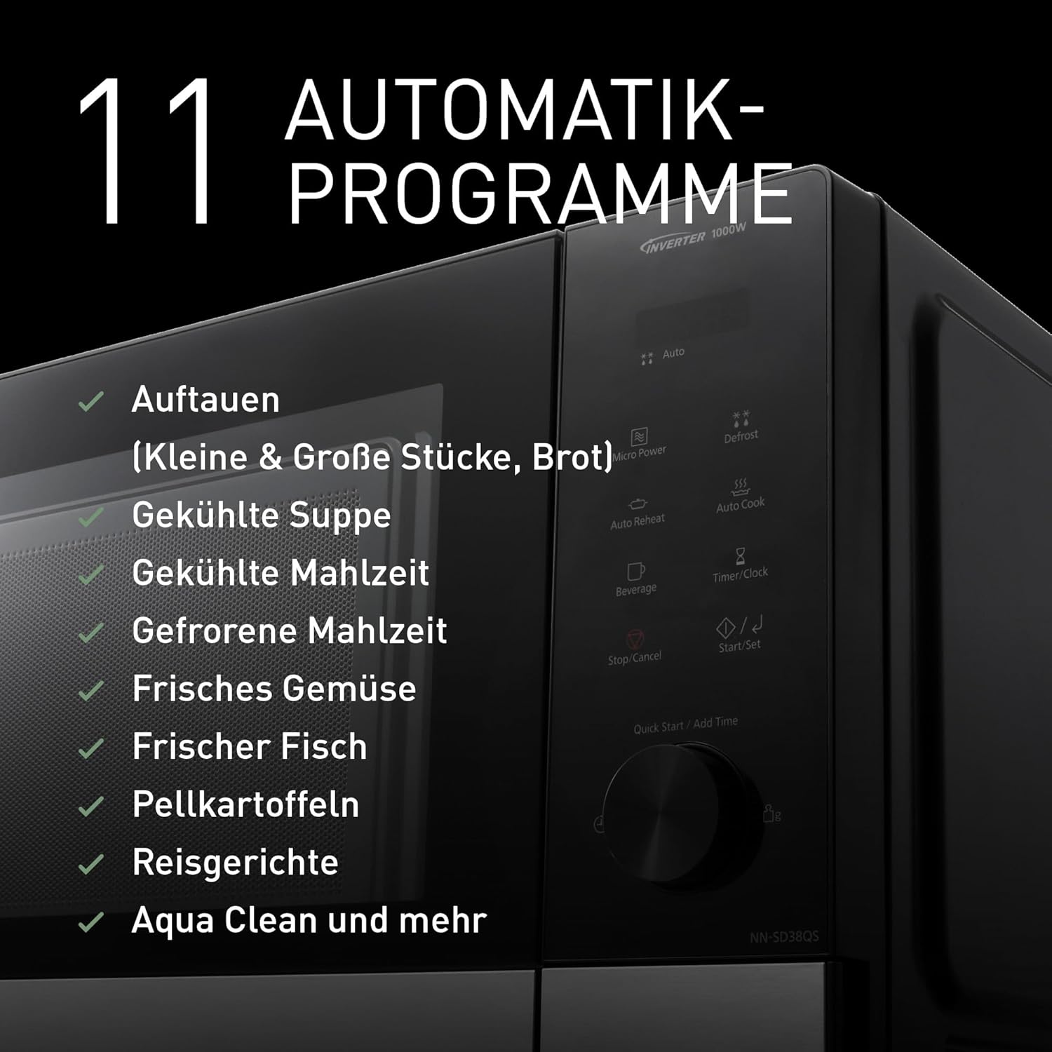 • 11 АВТОМАТИЧНИ ПРОГРАМИ: Опростете готвенето си с разнообразие от автоматични програми, включително автоматично претопляне, пресни зеленчуци, прясна риба, печени картофи и оризово ястие