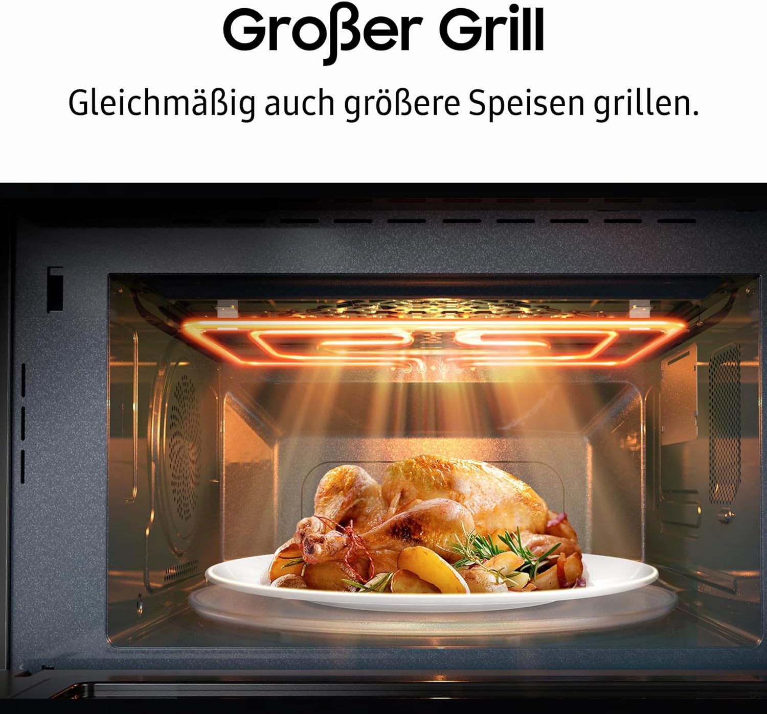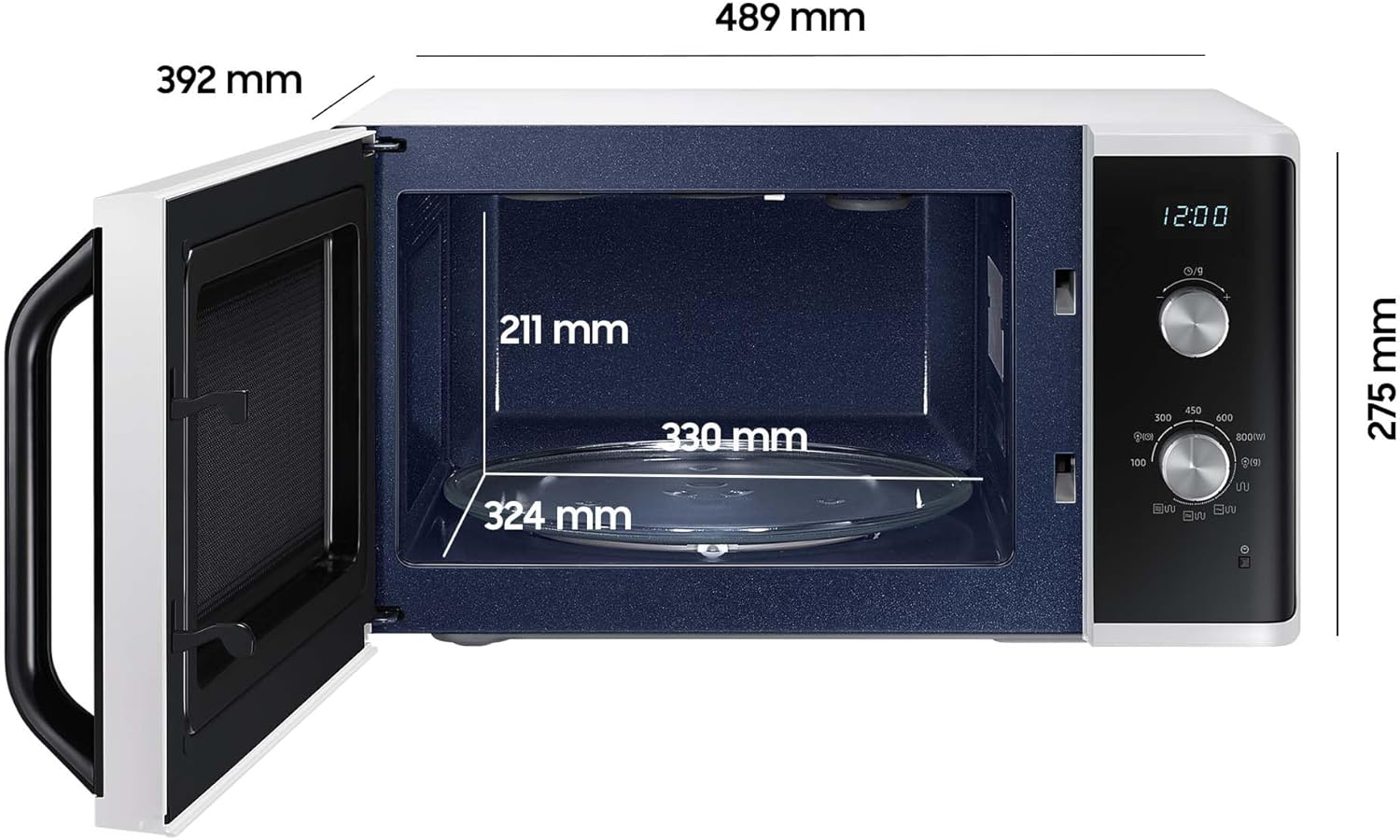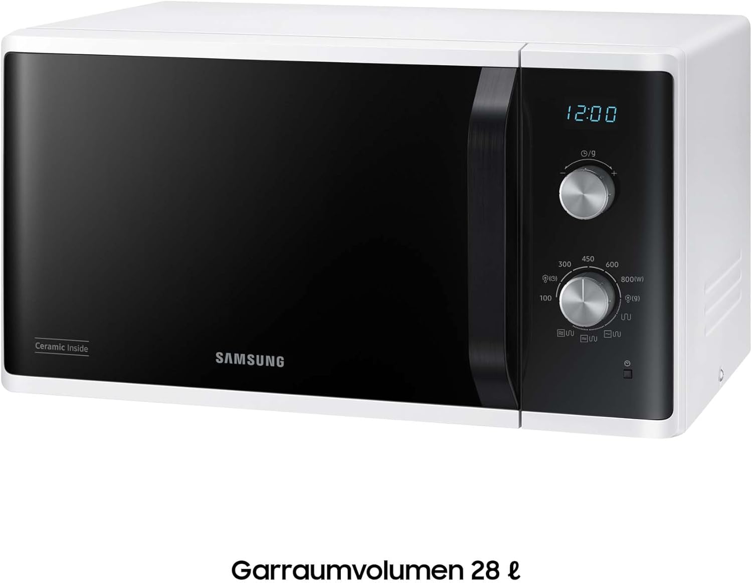 Микровълнова фурна Samsung MG23K3614AW/EG с грил / 23 литра готварско пространство / 800 W / Голям грил нагревателен елемент за равномерно запичане / Устойчив на надраскване керамичен емайл, бял