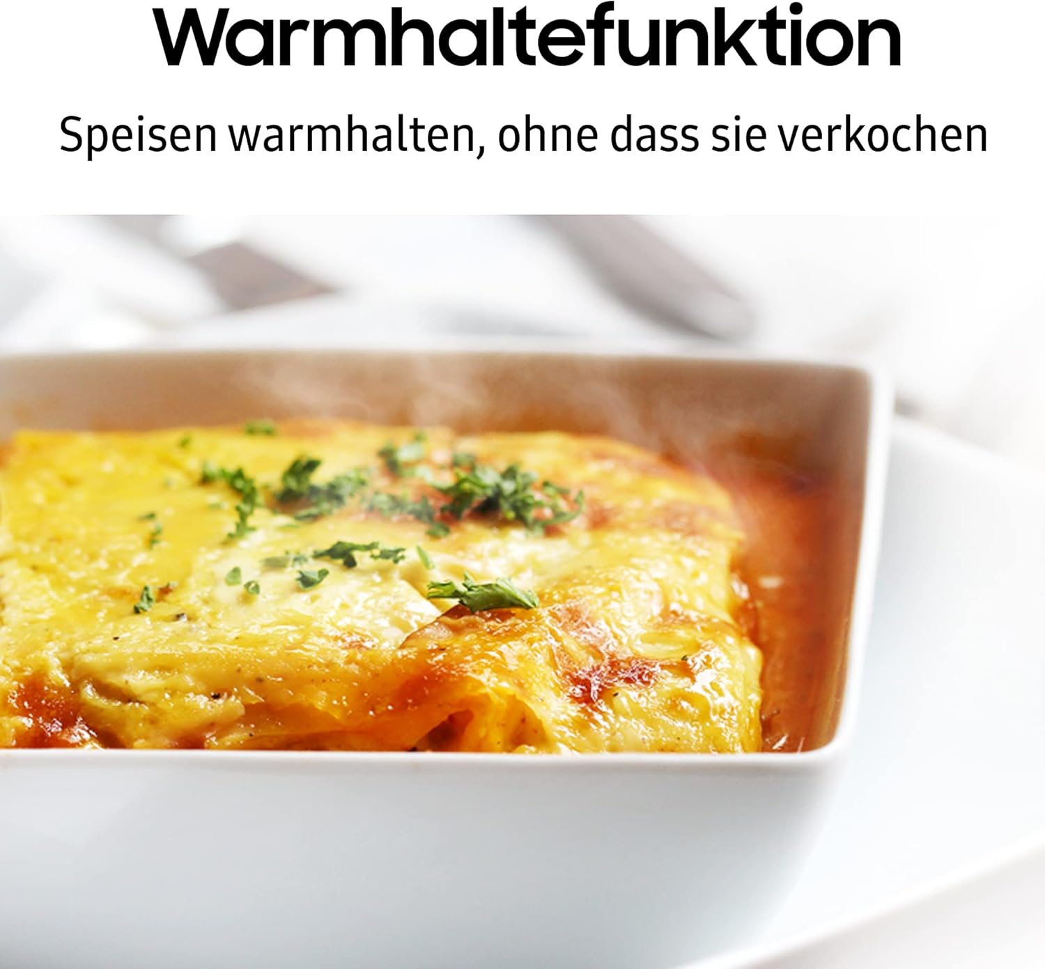 • С помощта на функцията за поддържане на топлина, ястията могат да се поддържат на желаната температура, без да се преготвят, и по този начин да се запази оптималният вкус и консистенция.