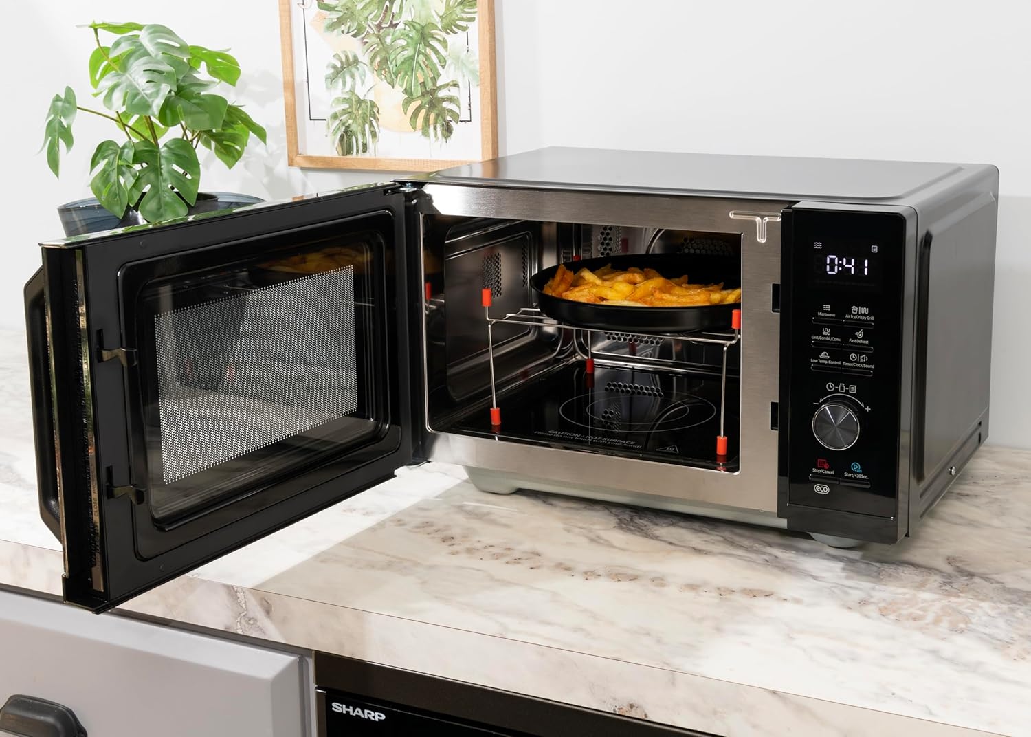 • 5-в-1 функция: Микровълнова фурна Airfry 900 W, с грил, горещ въздух и AirFry за разнообразно готвене.