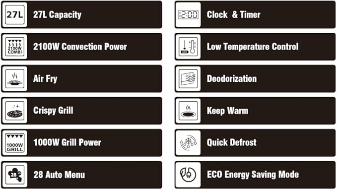 • ВИСОК КАПАЦИТЕТ И ПРОИЗВОДИТЕЛНОСТ: Капацитет от 27 литра с 900 вата за бързо и ефикасно готвене.