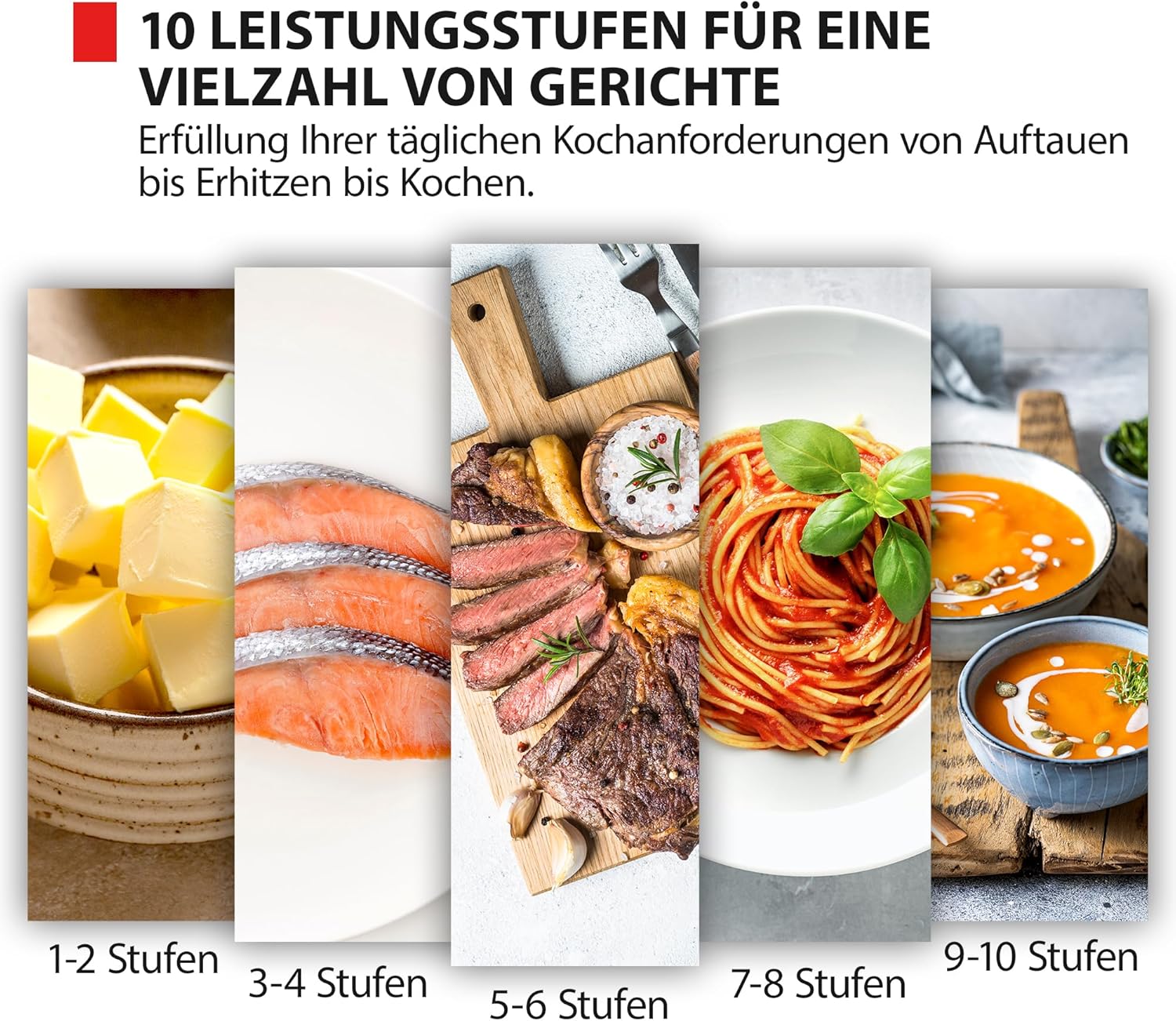 • 5 нива на мощност: за по-голяма гъвкавост в кухнята - от поддържане на храната топла до готвене на течности.