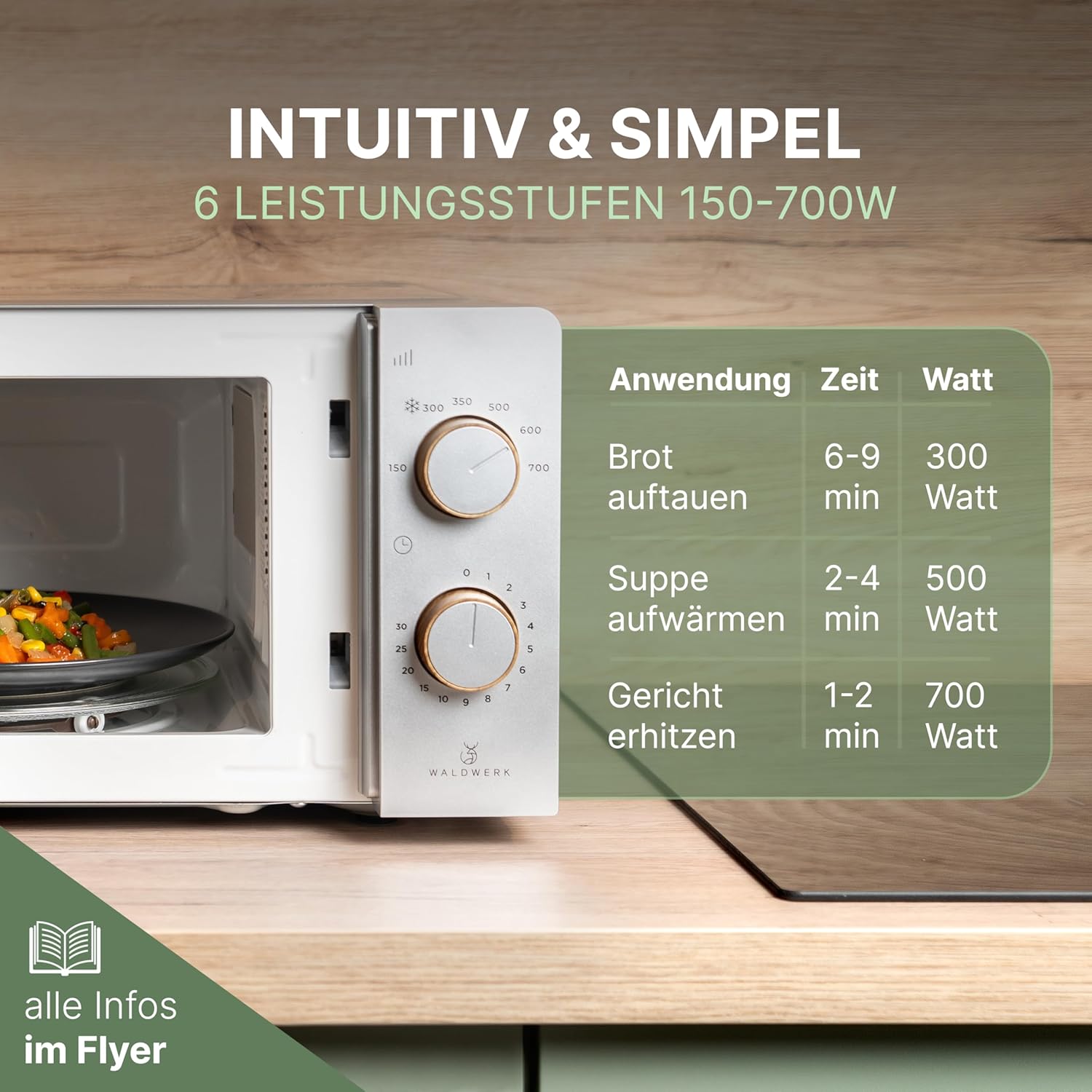 Микровълнова фурна WALDWERK 20 л, 700 вата – лесна за употреба с копчета и елегантен дизайн
