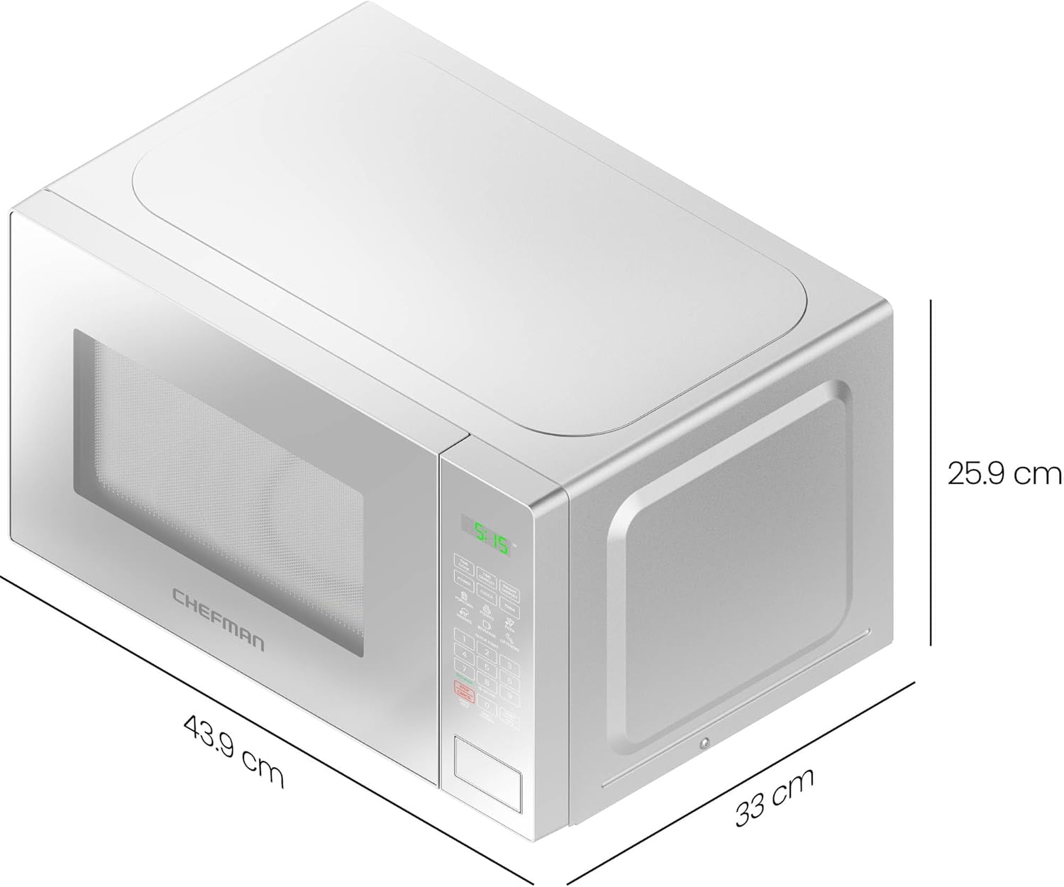 Микровълнова печка Chefman 20L 800W 6 предварително зададени настройки 10 нива на мощност Цифров дисплей Еко режим Функция за памет Без звук Защита от деца