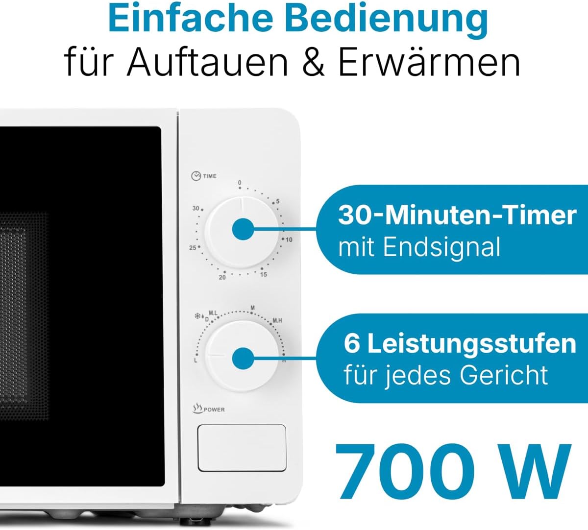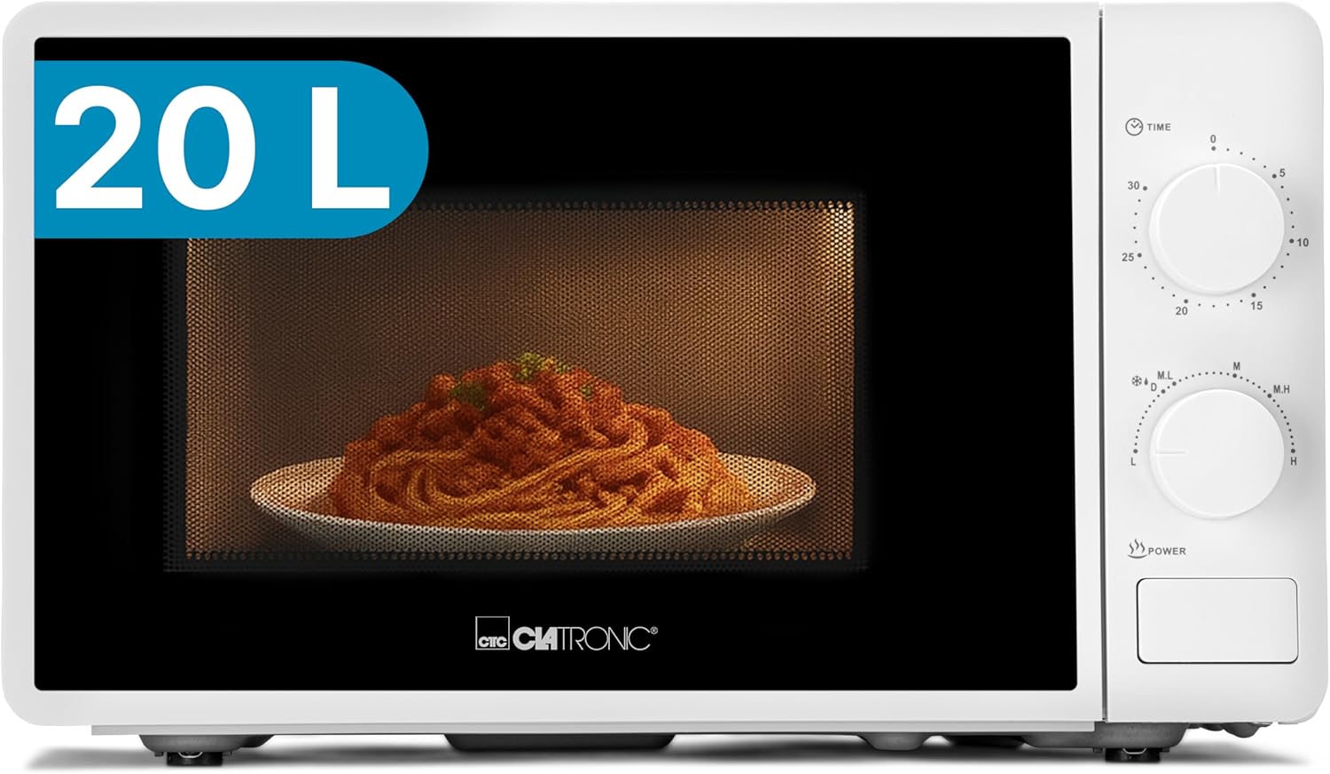Микровълнова печка Clatronic® | 700 вата | 6 нива | 20-литрова камера за готвене | Въртяща се чиния на 360° | Таймер със сигнал за край | Микровълнова печка | Микровълнова печка | MW 791 Бяла