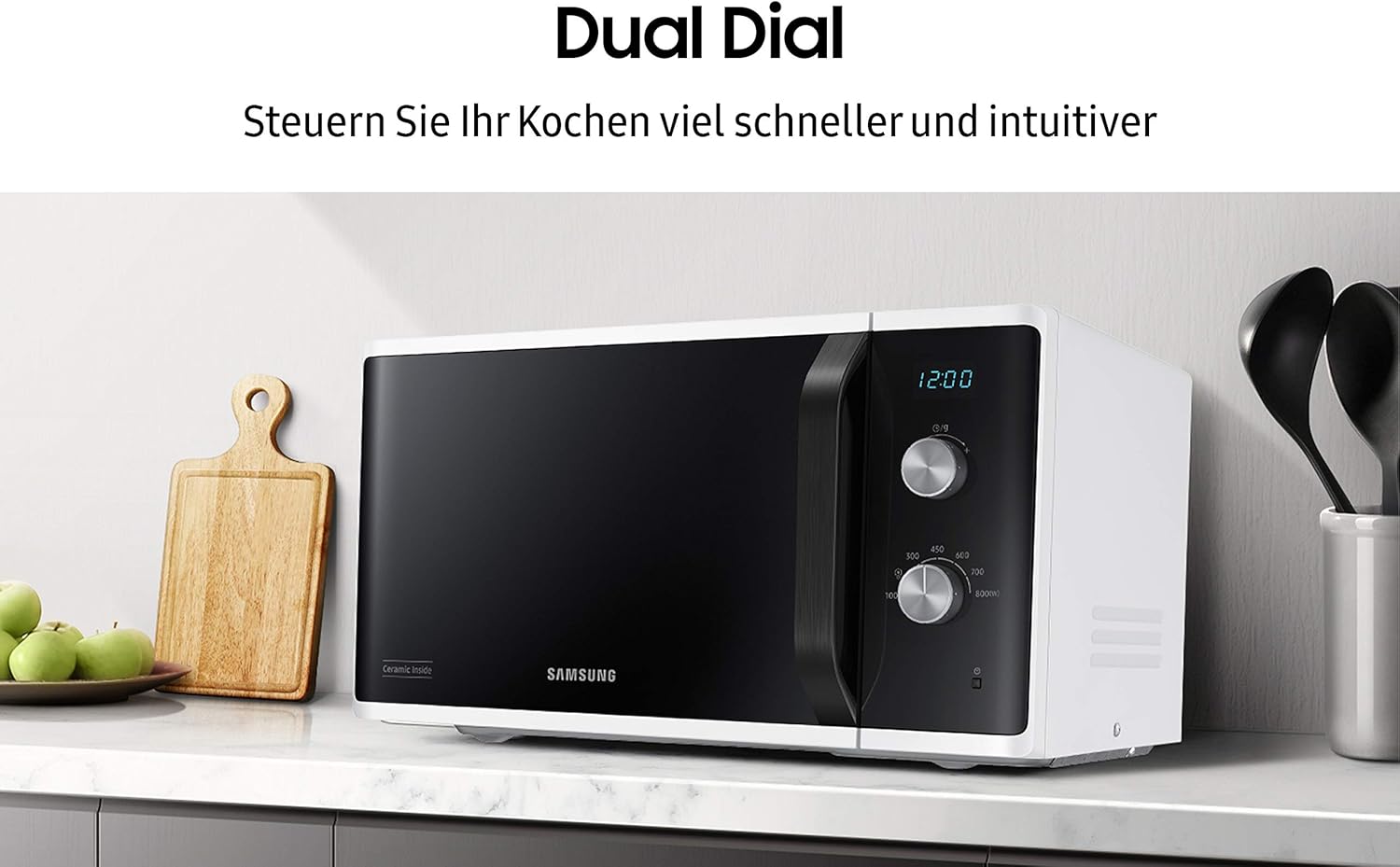 Микровълнова печка Samsung MW3500 MS23K3614AW/EG / 800 W / 23 л камера за готвене / 48.9 см ширина / устойчив на надраскване керамичен емайл / 6 нива на мощност / бяла
