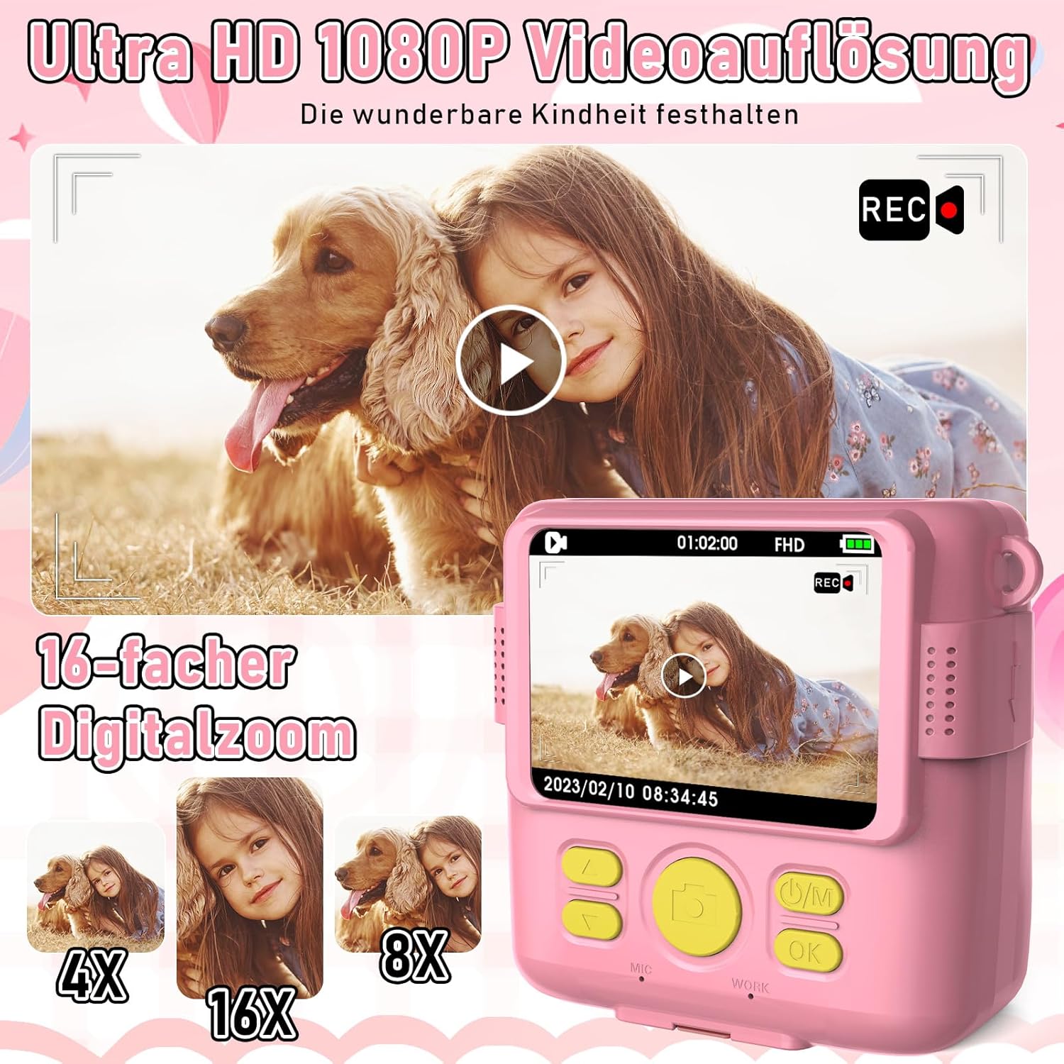 Детските играчки-камери са най-добрият избор, който да придружава децата, за да растат щастливи, нетоксични и безвкусни. Този детски дигитален фотоапарат е по-образователен и интерактивен, който съдържа фотография, рисуване, музика, видео, игри - любимото забавление на децата, стимулиращо желанието и интереса им към фотографията. Той е перфектен подарък за рожден ден, Коледа и Деня на детето.