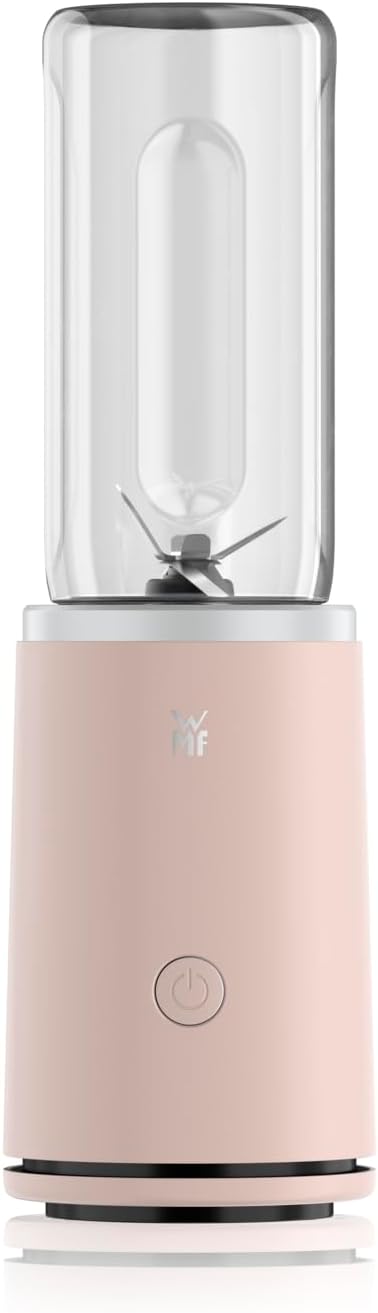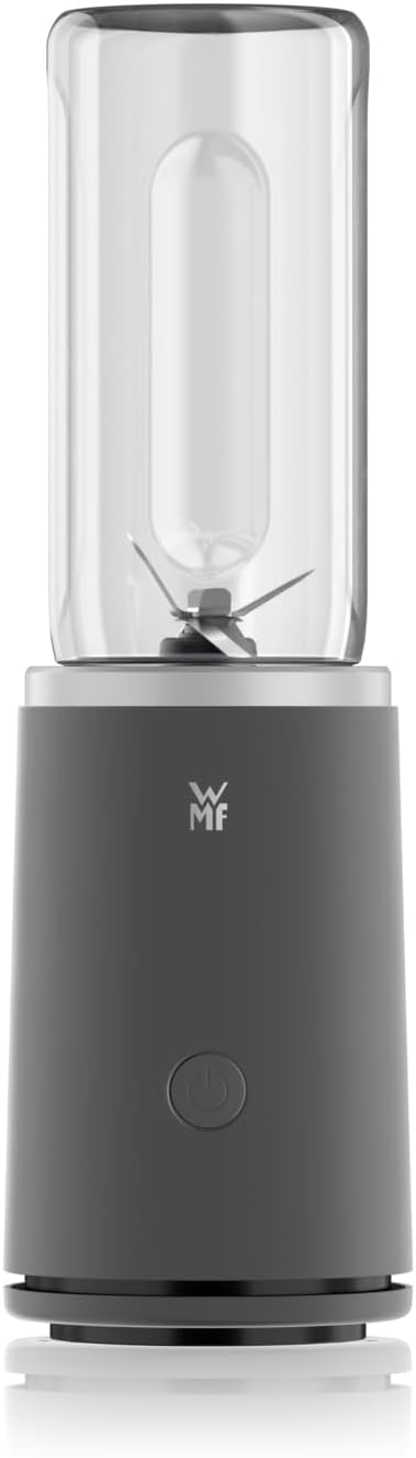 Мини блендер WMF Küchenminis Smoothie-to-Go с два контейнера за смесване/пиене 0.6 л, миксер, високопроизводителен миксер 300 W, матова неръждаема стомана, черен