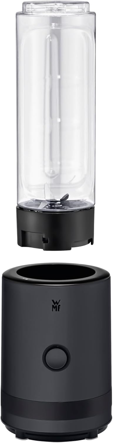 Мини блендер WMF Küchenminis Smoothie-to-Go с два контейнера за смесване/пиене 0.6 л, миксер, високопроизводителен миксер 300 W, матова неръждаема стомана, черен
