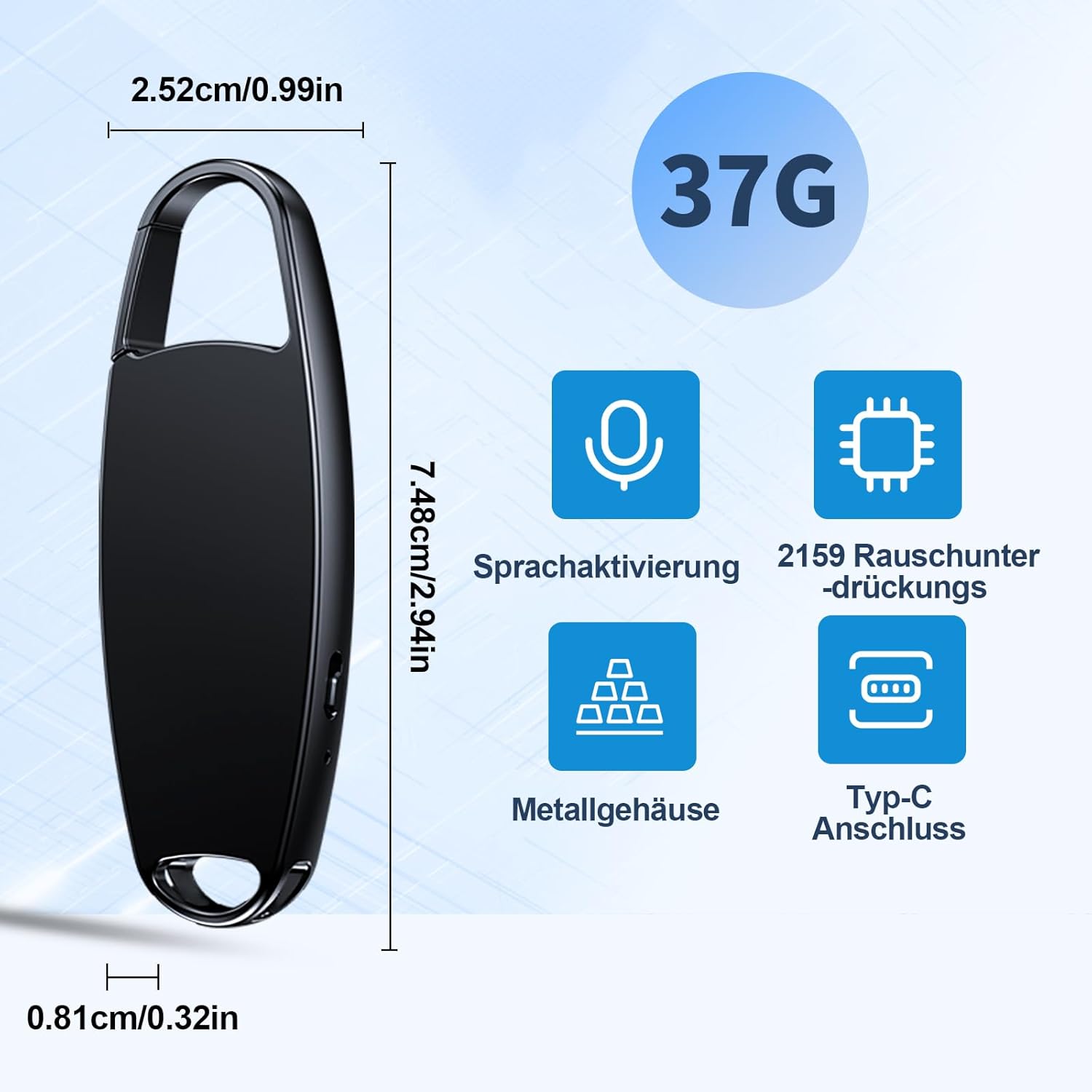 • 64GB голяма памет: Оборудван с 64GB вътрешна памет, нашият диктофон може без усилие да съхранява до 900 часа записи със 160kbps, което осигурява достатъчно място за висококачествени записи. С бързо 1,5-часово зареждане, което позволява около 20 часа употреба, той е идеален за различни приложения като срещи, лекции, разговори и интервюта.