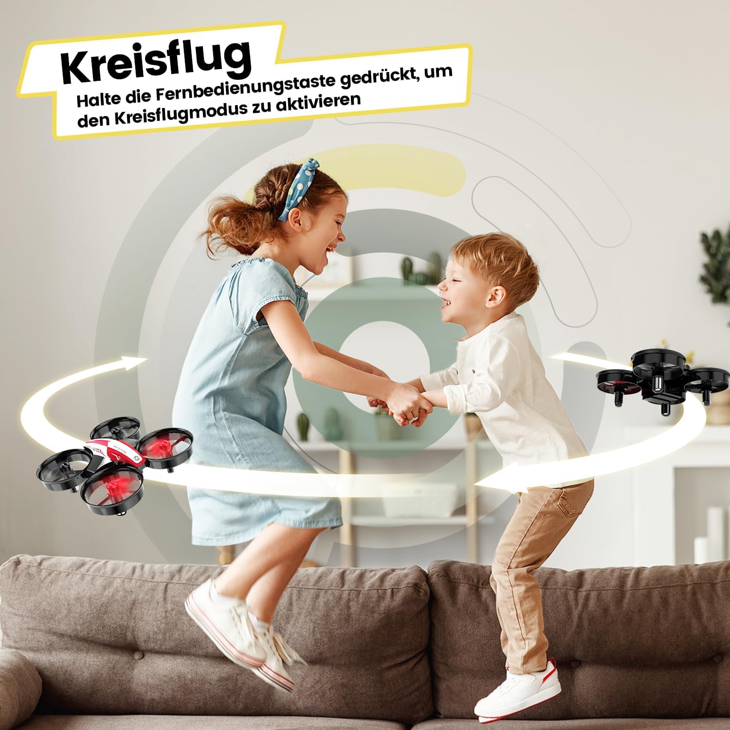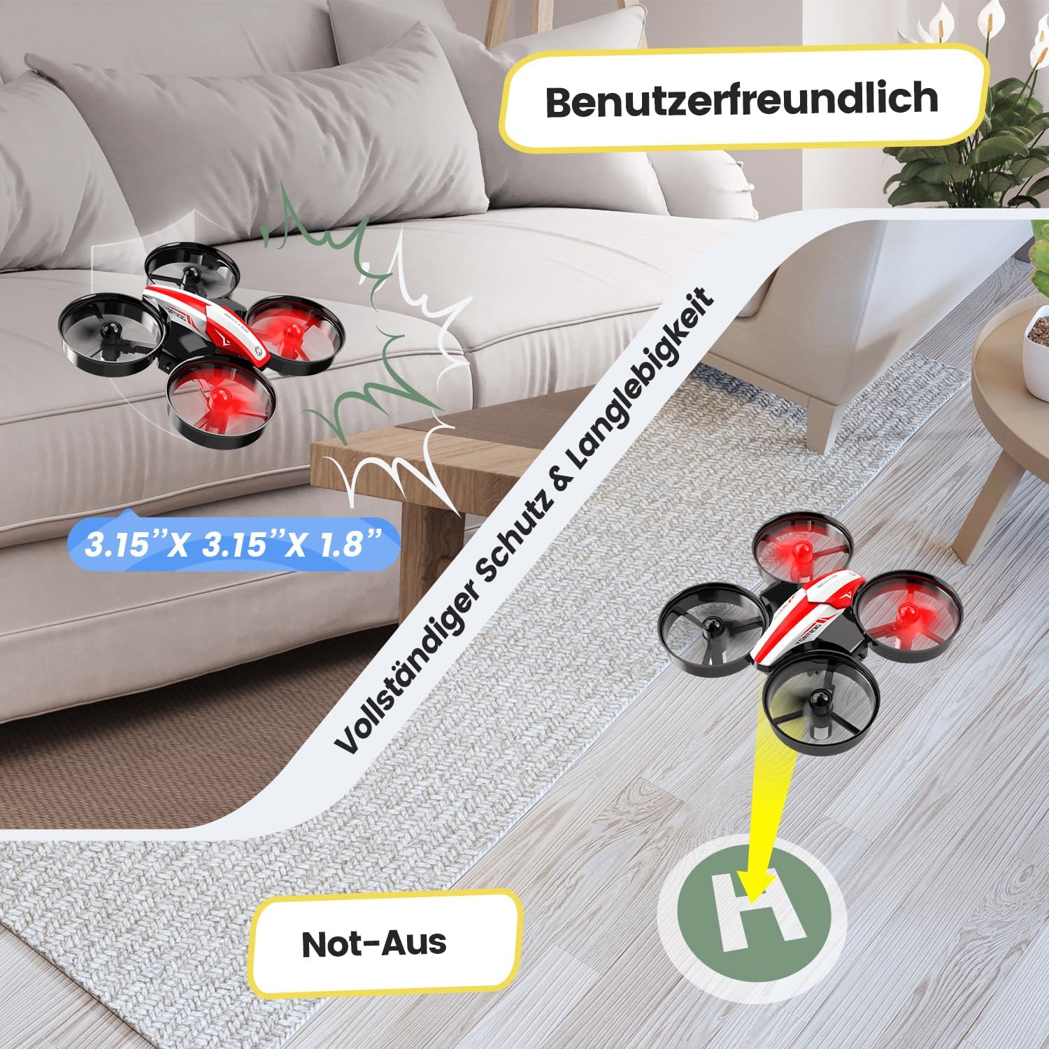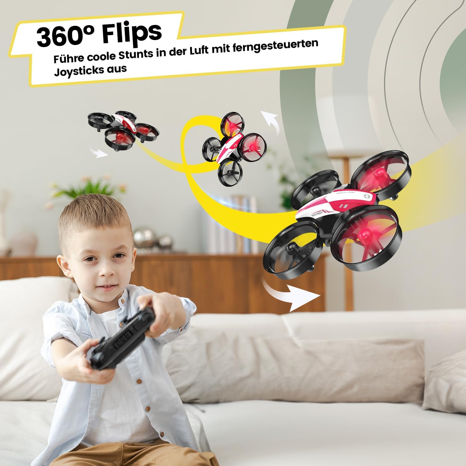 • Лесен за употреба: малкият RC дрон може да извършва въртене на кола, 3D ролки и кръгов полет. Идеален първи дрон за деца и начинаещи, за да се научат как да боравят с контролите. Чудесен дрон за закрито и открито при безветрие.