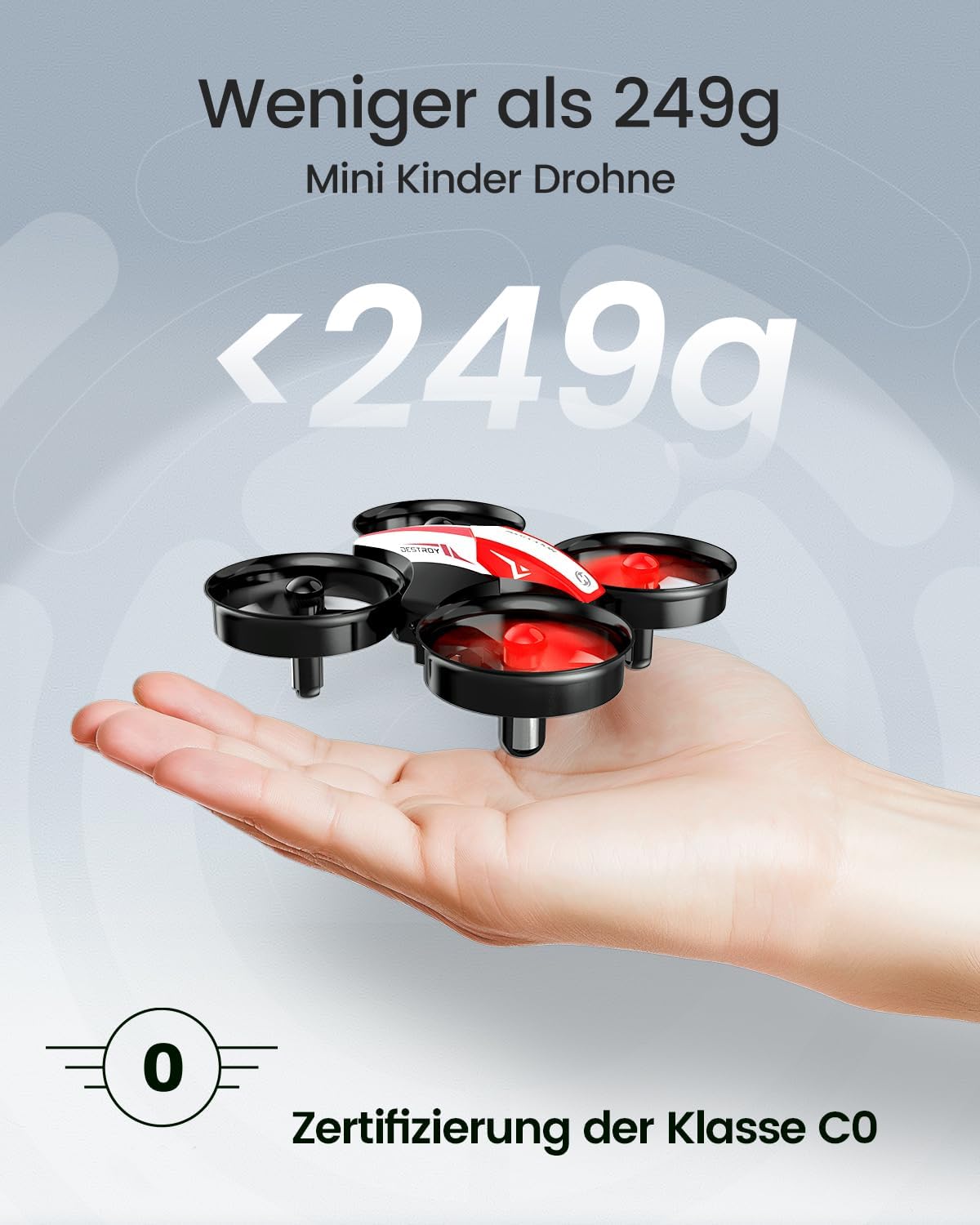 • Как да полетите: хвърлете дрона нагоре и той лети. Готина функция, която със сигурност ще хареса на децата ви. За защита всяко витло е снабдено със защитен капак. Това създава безопасност за вашите деца и удължава живота на дрона.
