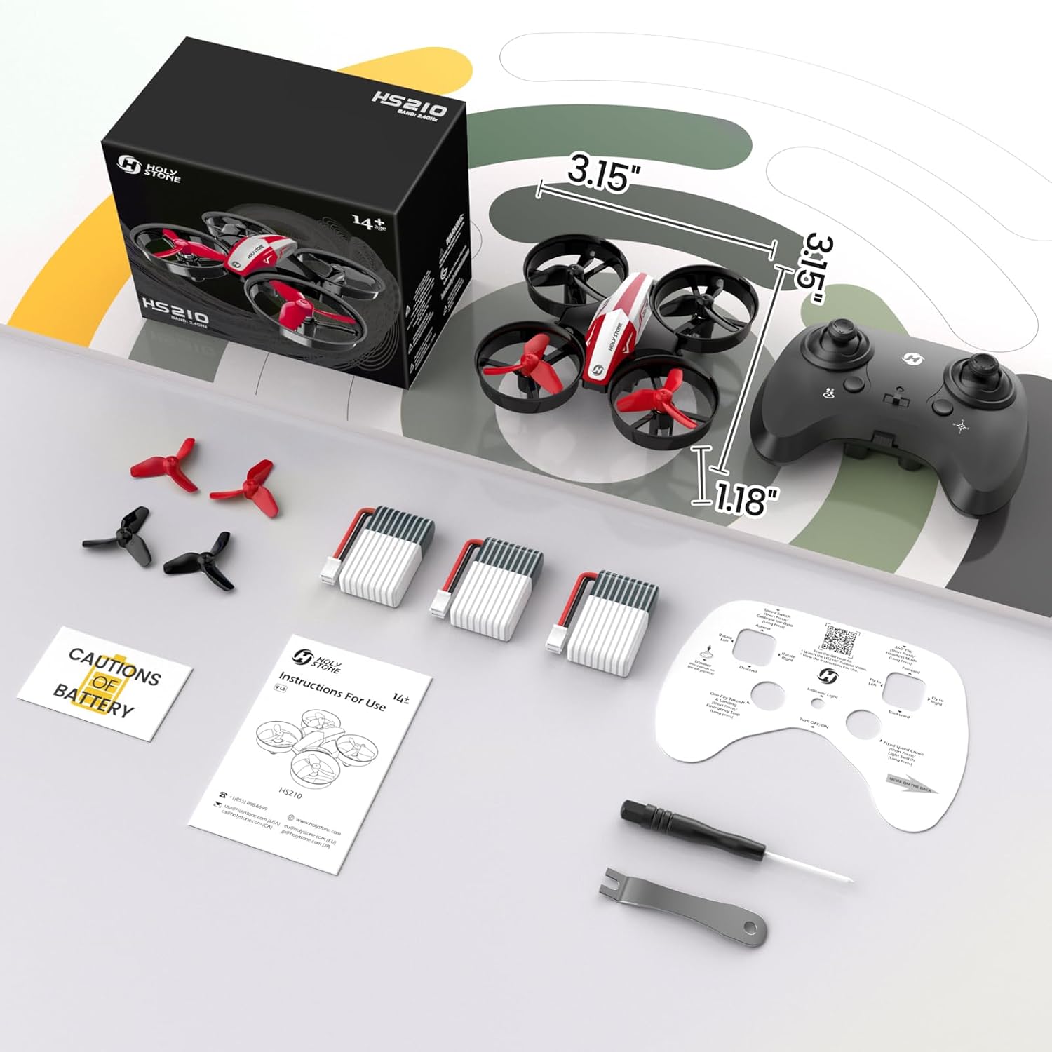 Мини дрон Holy Stone HS210 за деца начинаещи, RC квадрокоптер с 3 батерии, дълго време на полет, автоматично задържане на височина, 3D обръщания, режим Headless, стартиране с един бутон, играчка подарък за момчета и момичета, червен.