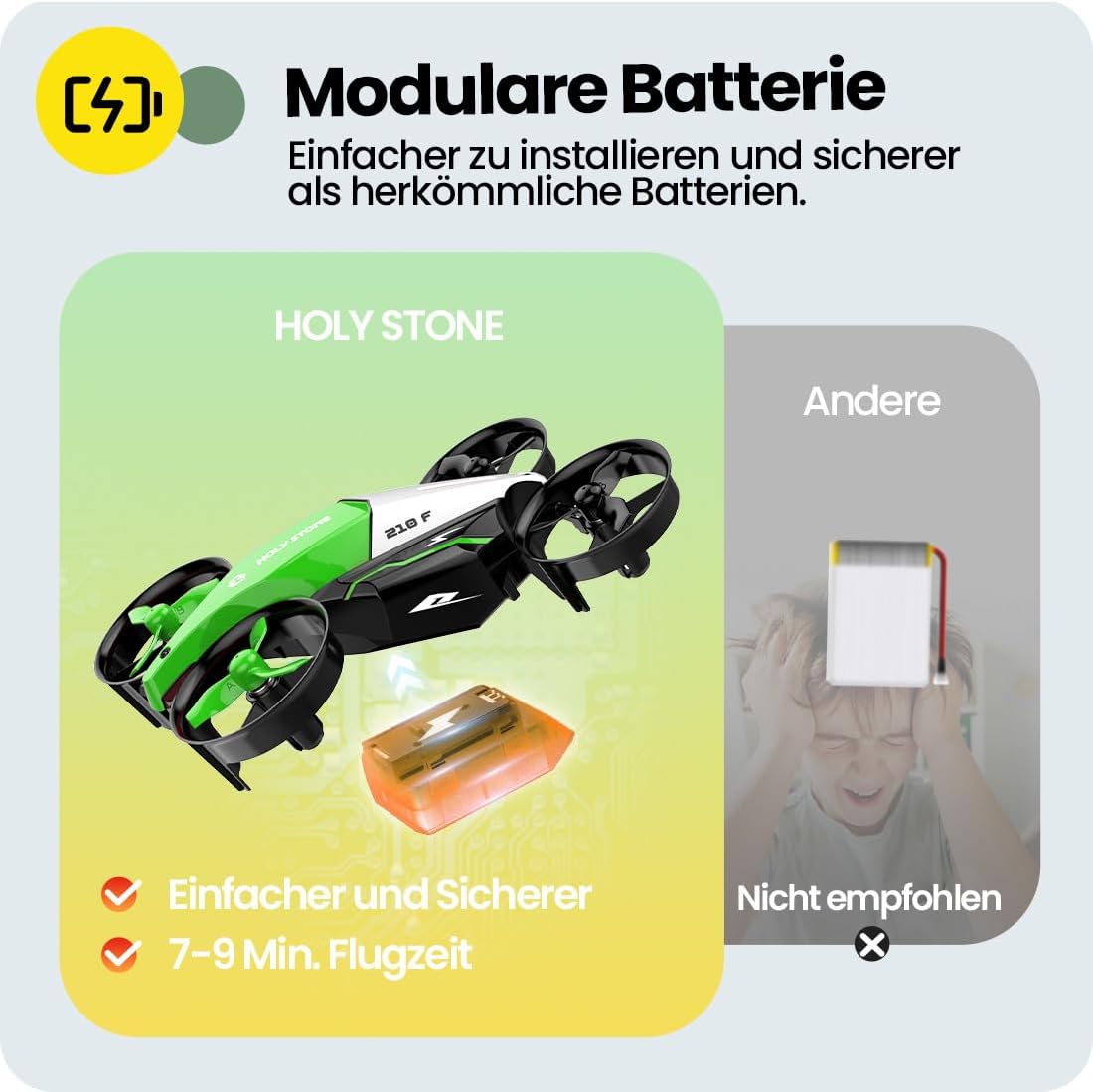 Мини дрон Holy Stone HS210F за деца, 2 в 1 RC квадрокоптер с режим на кацане и режим на полет, стартиране с един бутон, задържане на височина, 3D обръщания, режим Headless, играчки, подаръци за момчета, зелени