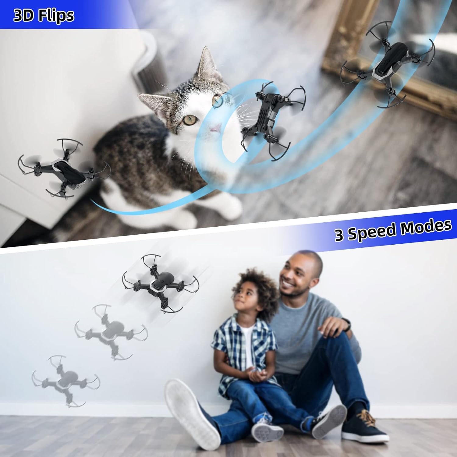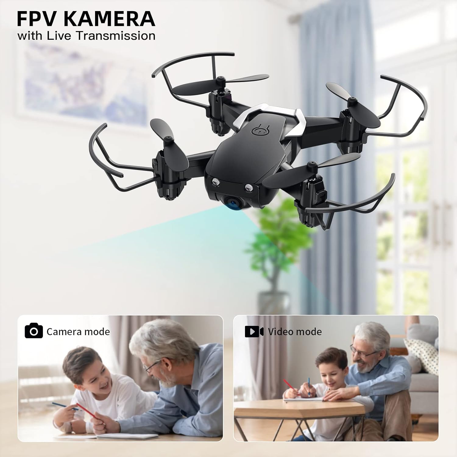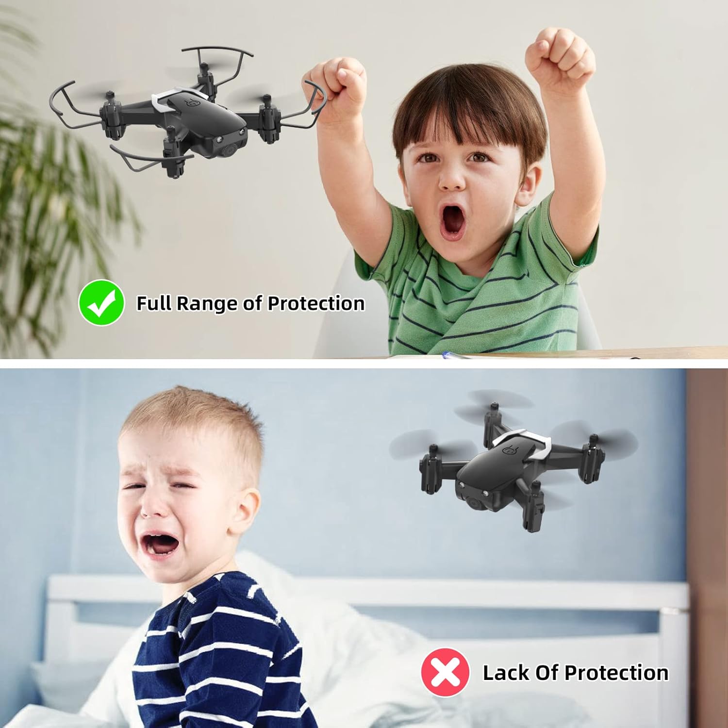 • Мини дрон и безопасност: мини дронът е лек и лесен за носене. За да предпази детето ви, всяко витло има защитен капак. Това създава безопасност за детето ви и удължава живота на дрона. Освен това, пакетът включва допълнителен комплект резервни витла.