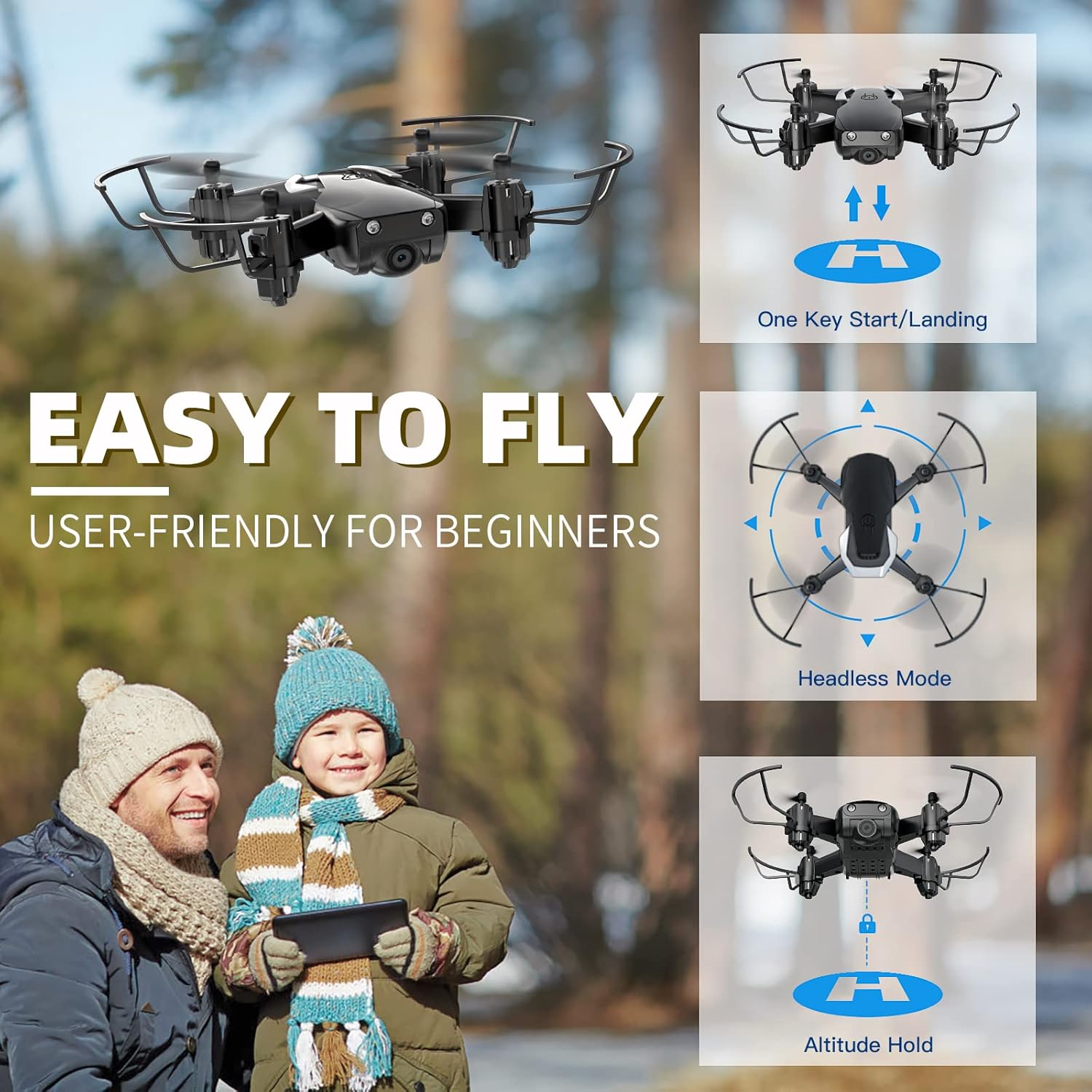 Мини дрон с камера 720P за деца, TEEROK RC FPV квадрокоптер с WiFi предаване на живо, 2 батерии, дълго време на полет, задържане на височина, стартиране/кацане с един бутон, режим Headless, 3D обръщания за...