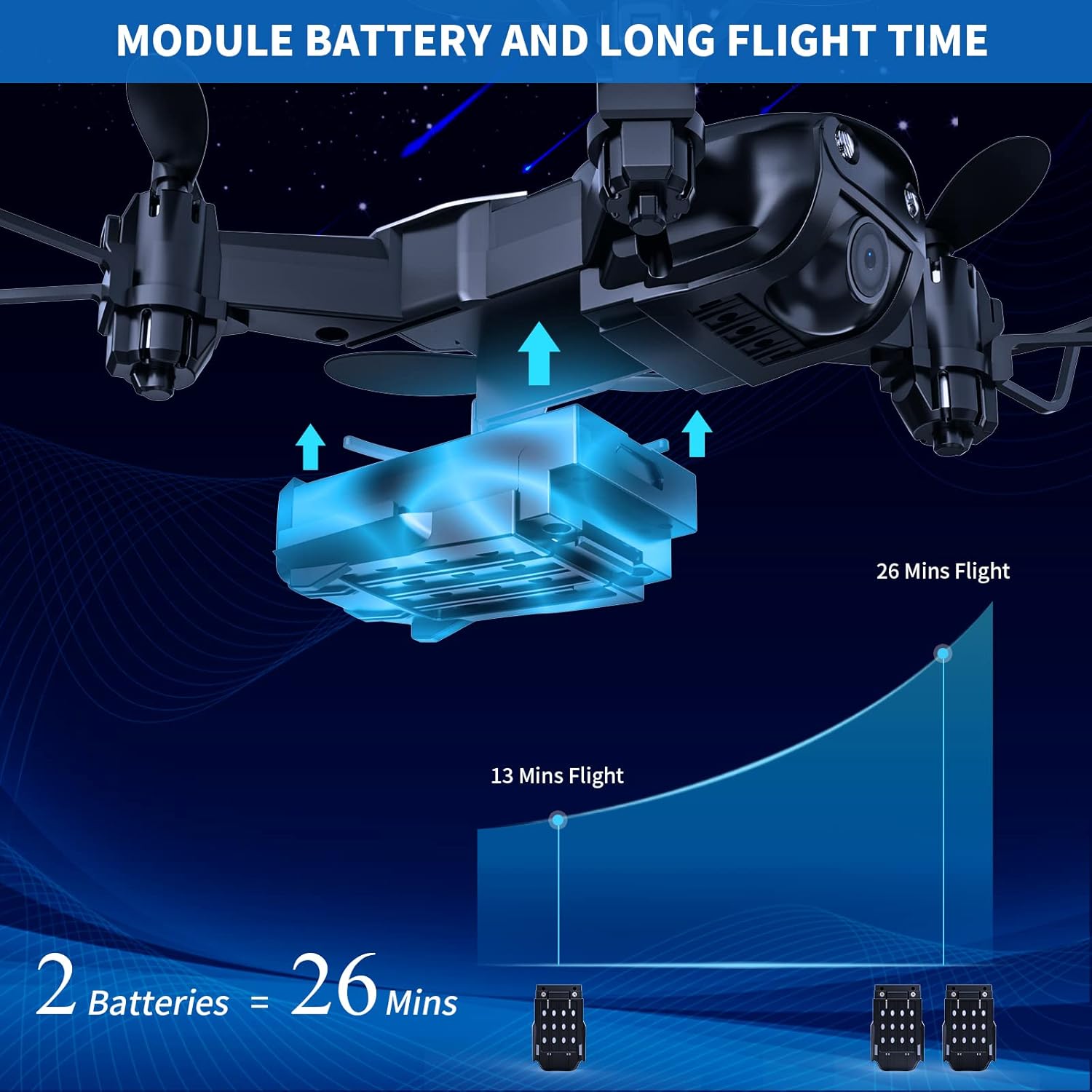 • 26 минути време за полет: мини дронът е оборудван с две модулни, презареждащи се батерии. Ние удължаваме удоволствието ви от летенето, като непрекъснато оптимизираме структурата и материалите на батерията, което осигурява много дълъг експлоатационен живот на батериите на дрона.