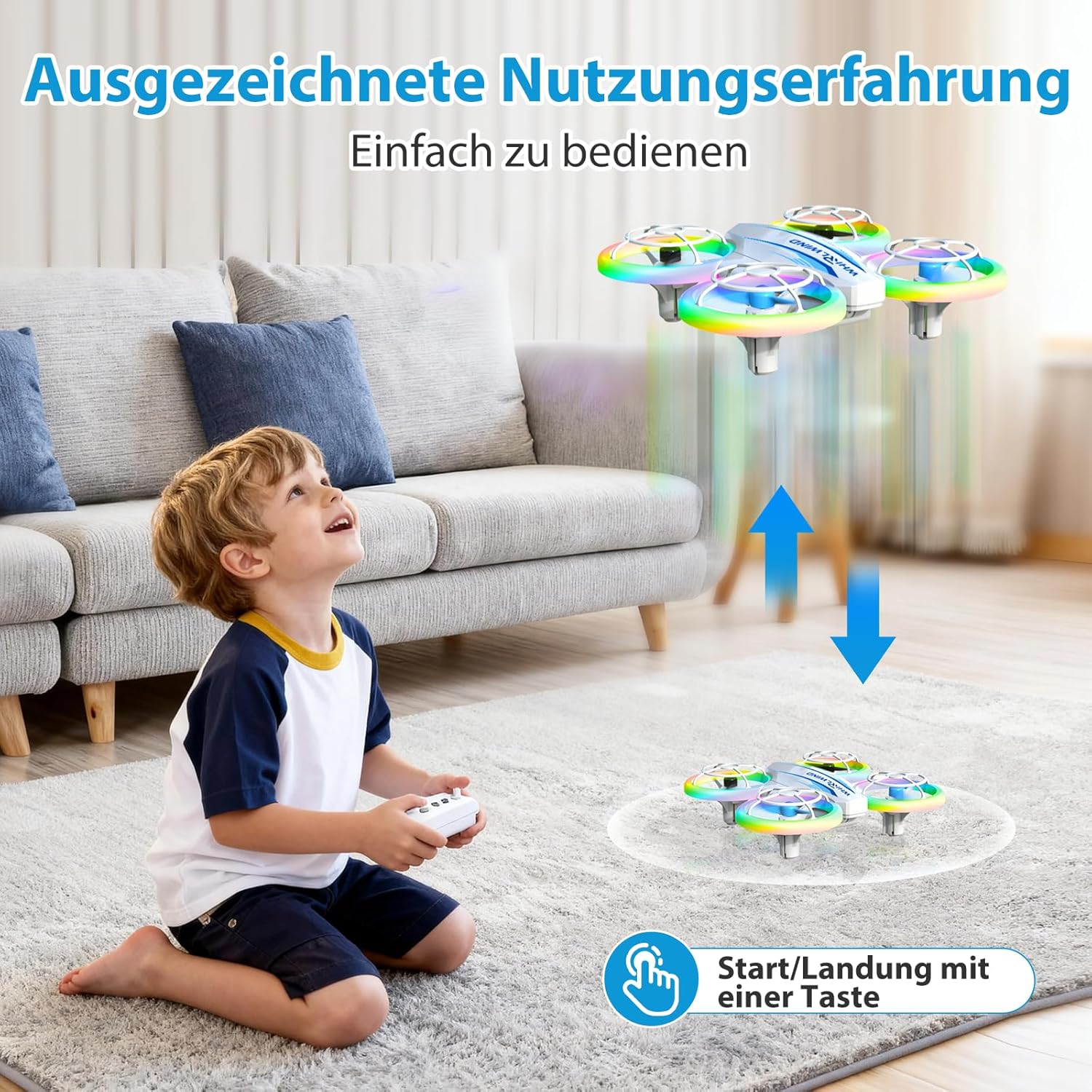 Мини дрон за деца, играчка дрон от 6+ години, RC самолет, играчка квадрокоптер, дрон за деца и начинаещи с 3 батерии, LED светлини, подарък за момчета и момичета на закрито и открито