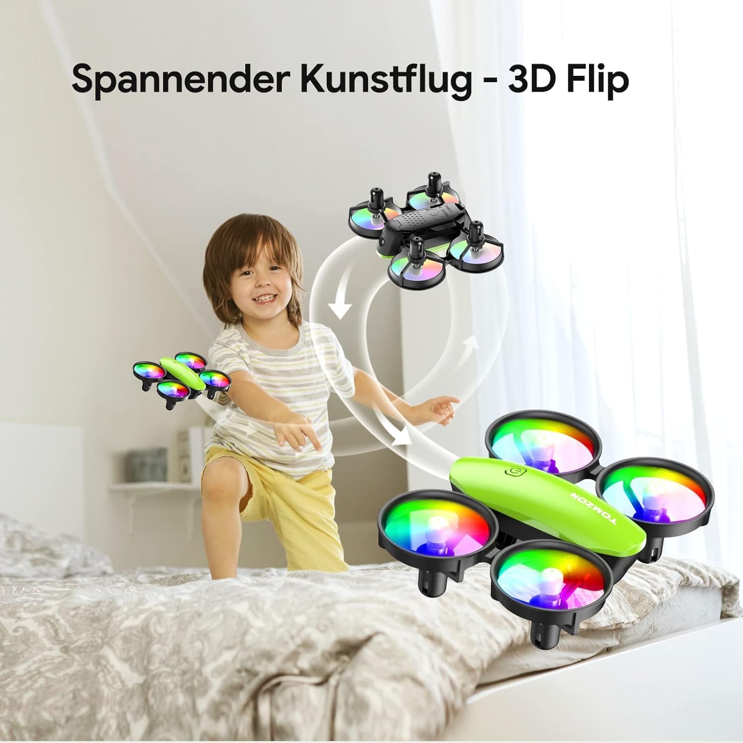 Мини дрон за деца начинаещи, RC квадрокоптер TOMZON с LED светлини, хеликоптер с дистанционно управление, дълго време на полет, 360° защита на витлото, хвърляне/3D обръщане/въртене/кръгове.