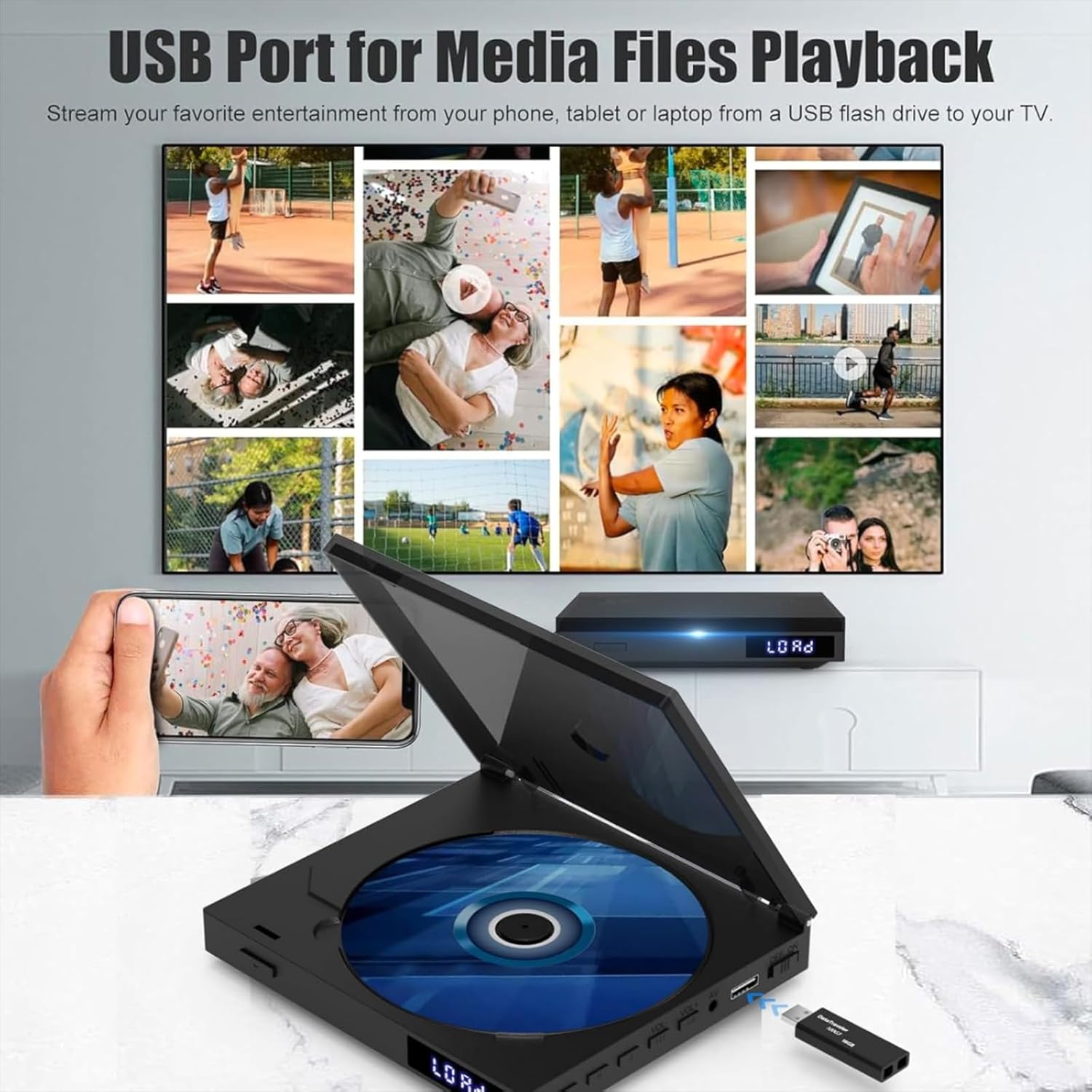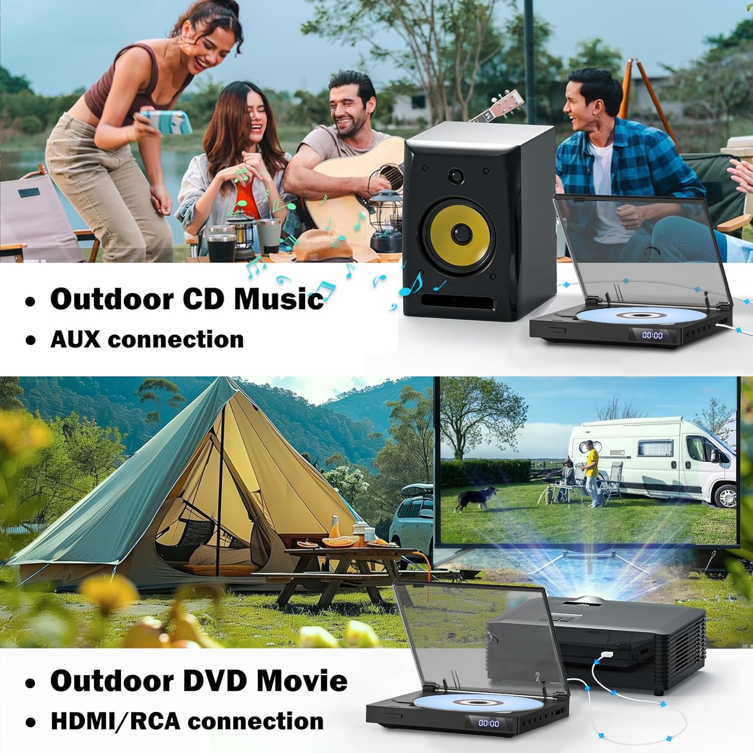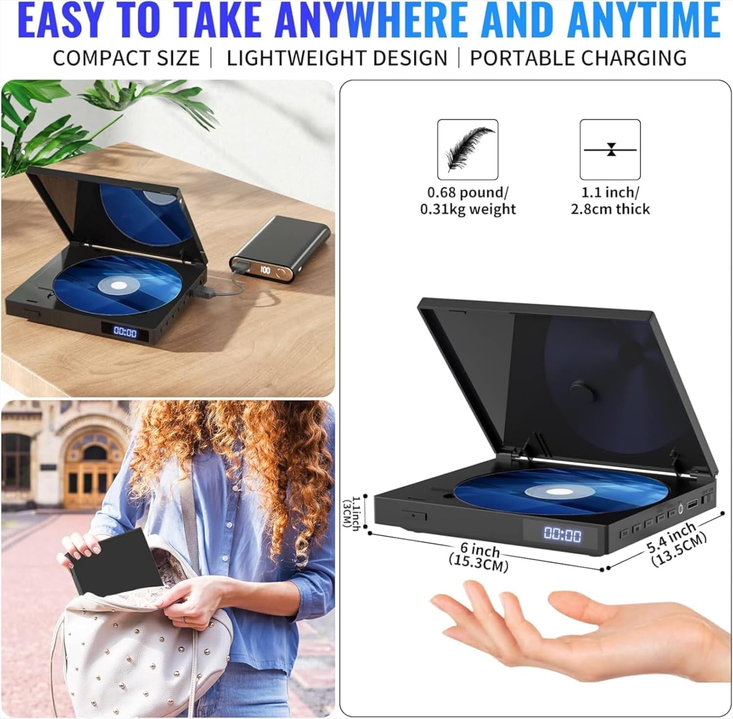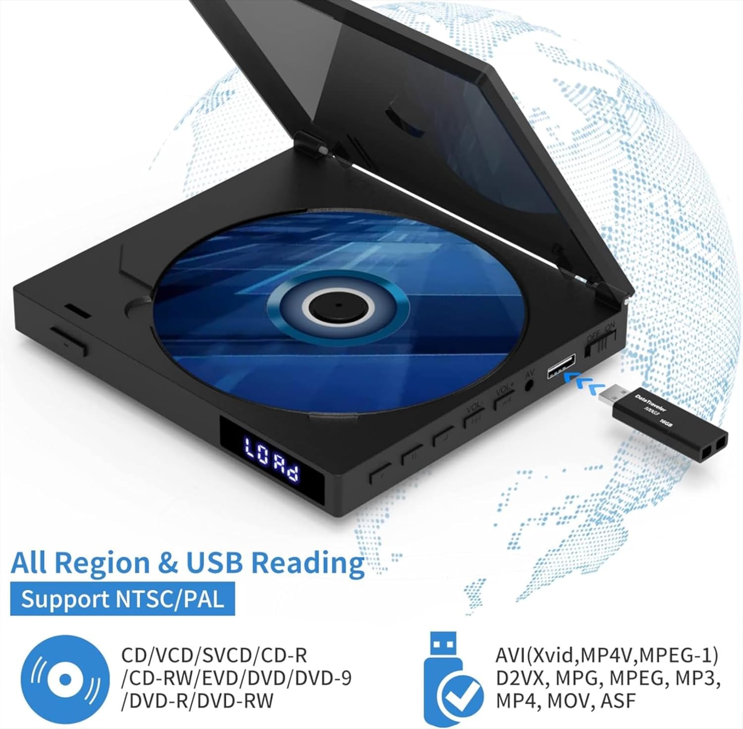 • Преносим CD плейър с HiFi високоговорители: Този мини DVD плейър използва технологията Dolby Audio Plus, за да запази детайлите и богатството на звука на оригинала. Този преносим DVD CD плейър има два 5W високоговорителя, така че не са необходими външни високоговорители - просто поставете CD-то и пуснете. Регулируемият диапазон на силата на звука от 1-20 е подходящ за по-тихо възпроизвеждане, особено за възпроизвеждане на CD-та и албуми от всякакъв вид на работа или преди лягане.