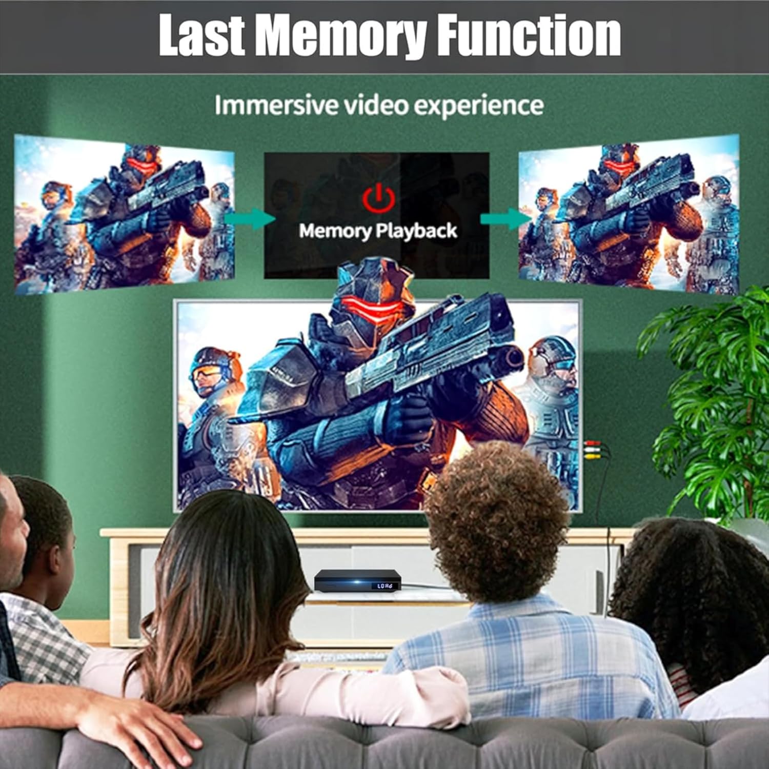 • 【Кино за всички региони】В сравнение с Blu-ray DVD плейърите, които поддържат възпроизвеждане само от регион 1 (САЩ/Канада), този 1080P HDMI DVD плейър отговаря на вашите изисквания с изключително компактен размер и поддържа възпроизвеждане на дискове от региони 1-6, поддържани формати: CD, DVD, DVD-R/+R, DVD-/+RW, CD-R/-RW, VCD, SVCD. Компактен DVD. Плейърът има функция за възпроизвеждане от паметта, ако дискът не бъде сменен, възпроизвеждането се възобновява от последната позиция, в която е било изключено захранването.
