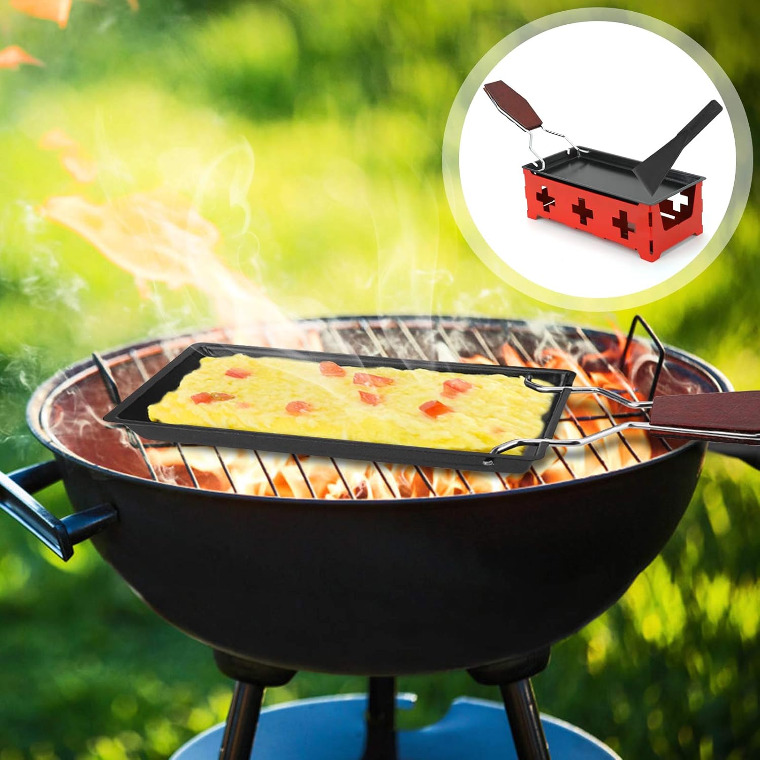 Многократна употреба Тиганът може да се сваля, за да можете да го използвате и в други грилове с открит пламък. Може да се използва за печене на сирене, шоколад и др.