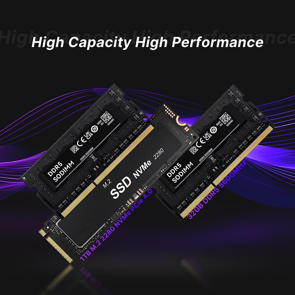 • ✅【DDR5 RAM & 1T SSD】Оборудван с 2 x DDR5 4800MHz RAM, 1 x M.2 2280 NVMe PCIe 4.0 x 4 SSD. Поддържа добавяне на втори PCIe 4.0 SSD.