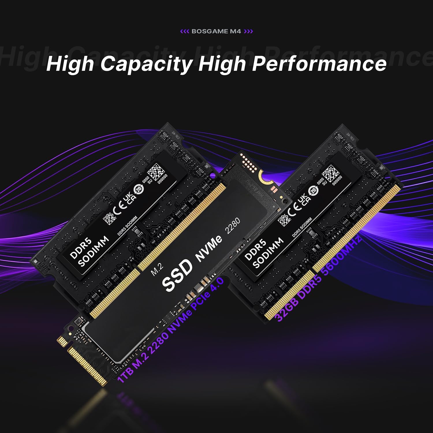 • ✅【DDR5 RAM & 1T SSD】Оборудван с 2 x DDR5 4800MHz RAM, 1 x M.2 2280 NVMe PCIe 4.0 x 4 SSD. Поддържа добавяне на втори PCIe 4.0 SSD.