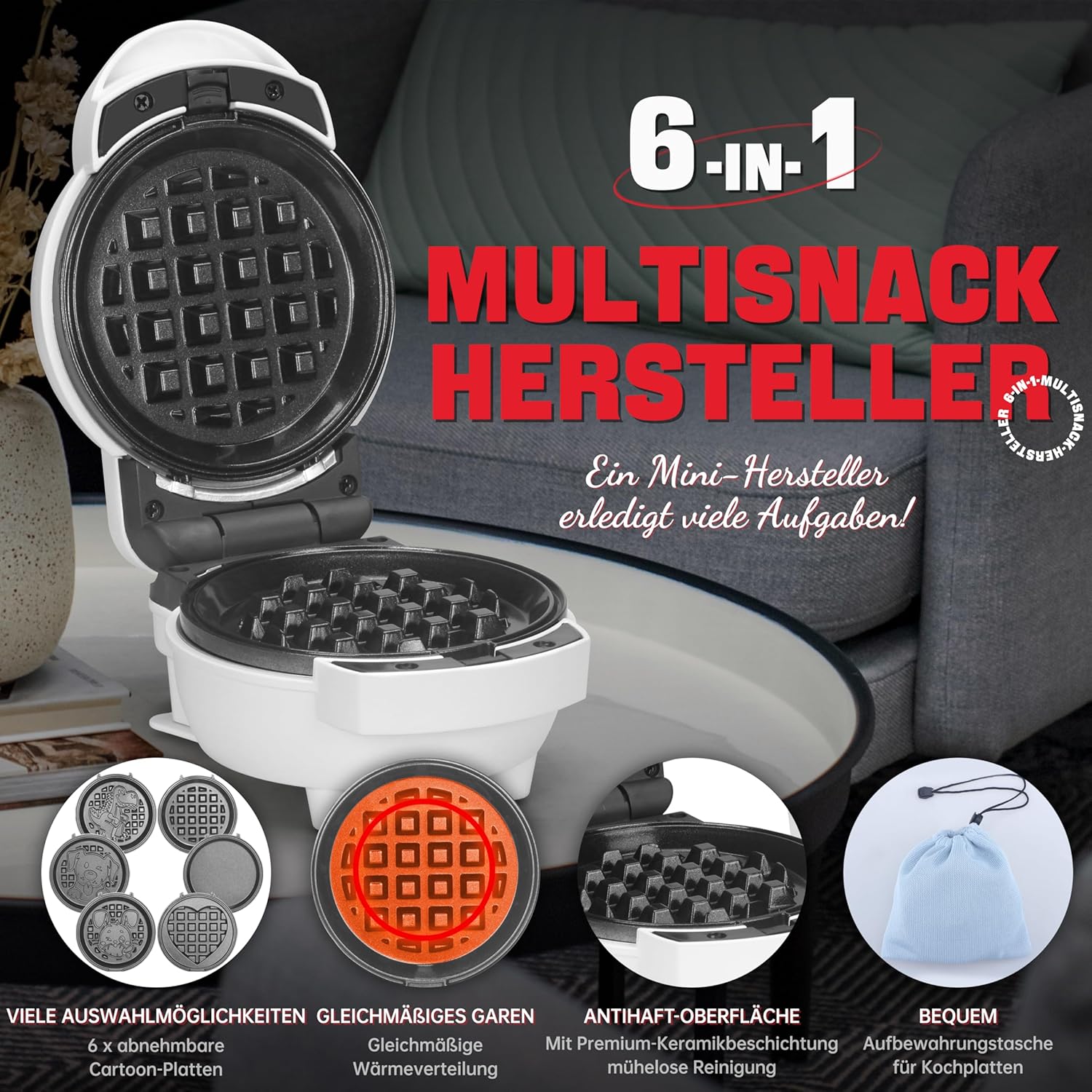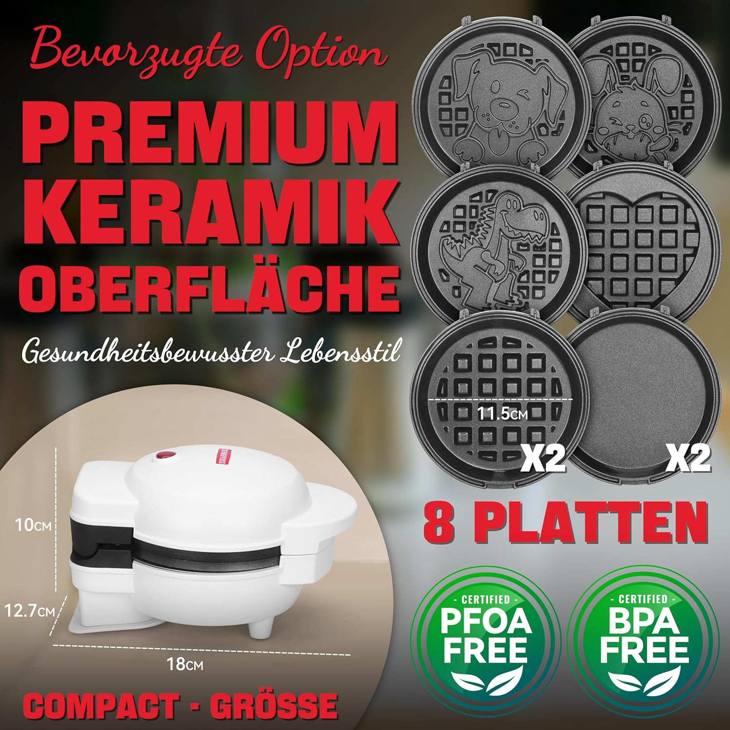 1. Мини крем за гофрети: с този мини гофретник можете не само да правите вкусни гофрети, но и да приготвяте креативни ястия с различни вкусове. От класически мини гофрети сморс до гофрети на шишчета, възможностите са безкрайни. 2. Бързо и лесно: пригответе без усилие 8 x 5 см вкусни мини гофрети едновременно и можете да приготвите цяла питка само за няколко минути. Удобните индикаторни светлини гарантират, че гофретите се получават перфектно всеки път, а лекотата на използване ги прави лесни за употреба. 3. Неравномерни и вкусни: благодарение на равномерното нагряване, всяка мини гофрета е идеално равна и гарантира равномерно и задоволително изживяване. Хрупкавият външен слой и деликатният вътрешен слой създават вкусна текстура. За да ви помогне да започнете, опаковката се предлага с книга с рецепти. 4. ЛЕСНО ПОЧИСТВАНЕ Незалепващите плочи за печене правят почистването лесно. Просто ги избършете с включената четка и сте готови за следващото си гофретно приключение. 5. РАДОСТ ЗА ВЛЮБЕНИ ХОРА Този мини гофретник е идеален за семейни събирания. Той е и чудесен подарък за приятели и познати, които обичат вкусни и практични лакомства.