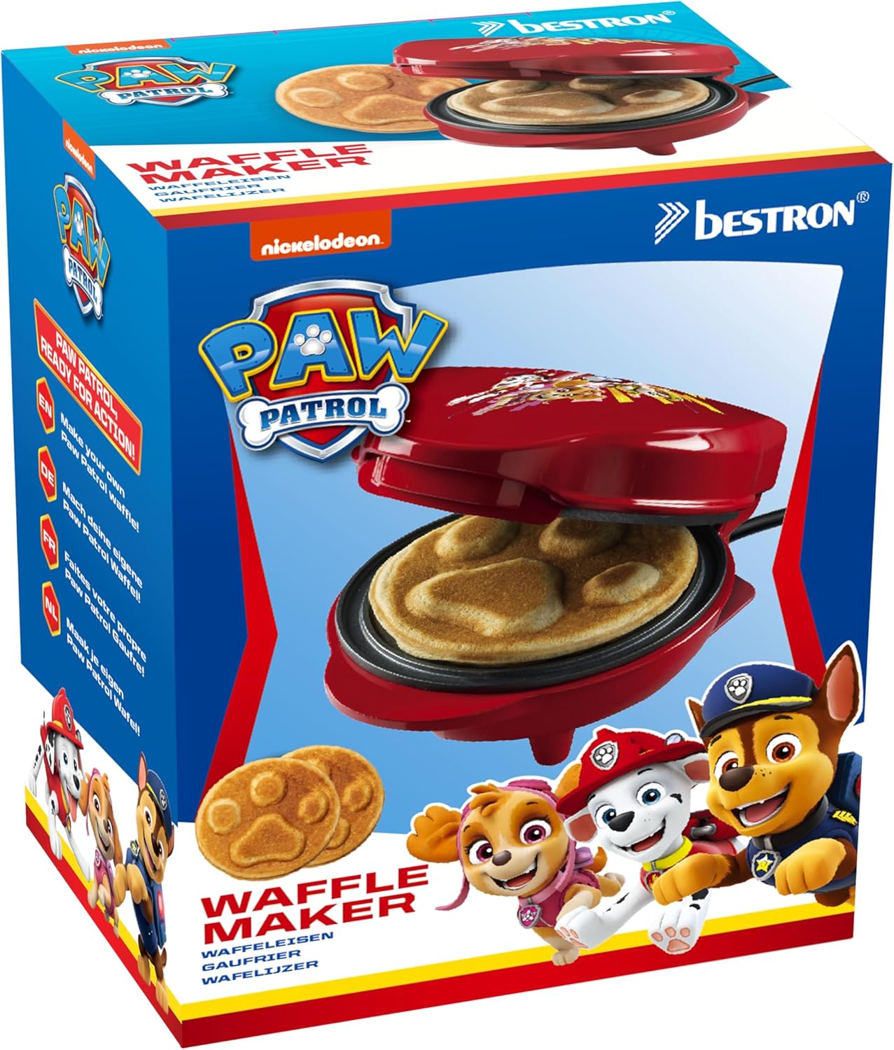 Мини гофретник Bestron, 550 W, Незалепващо покритие, Хладна на допир дръжка, Светлинен индикатор за температура, Уникален дизайн Paw patrol, Червен