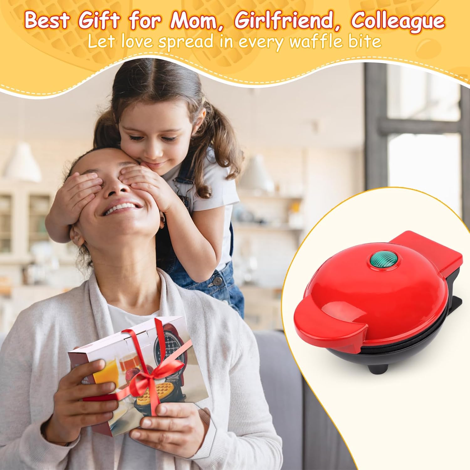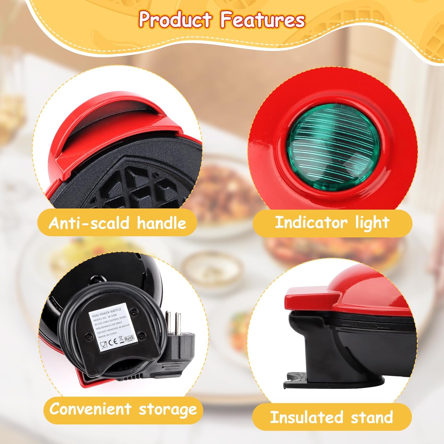 Всяко домакинство не може без такъв мини гофретник, с червен корпус, весел, мини размер, не заема много място на кухненския плот, висока мощност 350 вата, свети 5 минути, сутрин можете да приготвите вкусна закуска за семейството си.