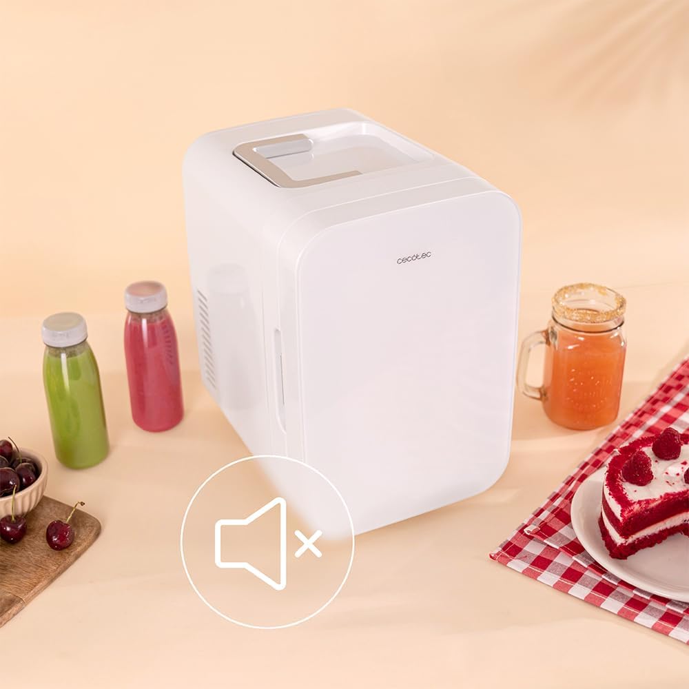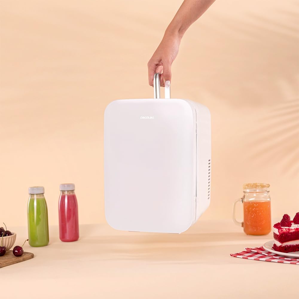 Мини хладилник Cecotec Bolero MiniCooling 6L Bahamas White, работи на 12V-220V, съвместим с автомобили и каравани, функция за охлаждане и отопление, температурен диапазон 5-65º, лесен за транспорт.