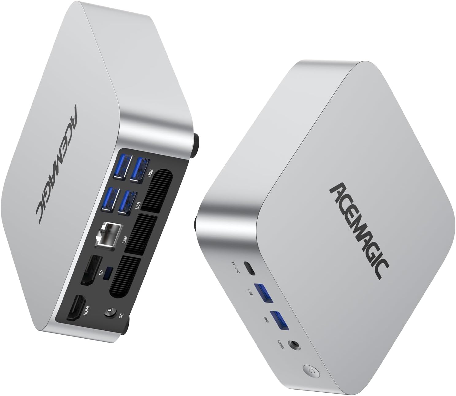 • 【Елегантен и компактен】Уморени ли сте от обемисти настолни компютри? ACEMAGIC Mini PC ще промени мнението ви! Той е с дизайн 12,8 x 12,8 x 4,1 см и компактно шаси, което заема минимално място. Също така разполага с VESA стойка и може да се монтира зад монитор, на гърба на бюро или на стена. Лесно се интегрира в различни среди, създавайки подредено и удобно работно пространство за вас.