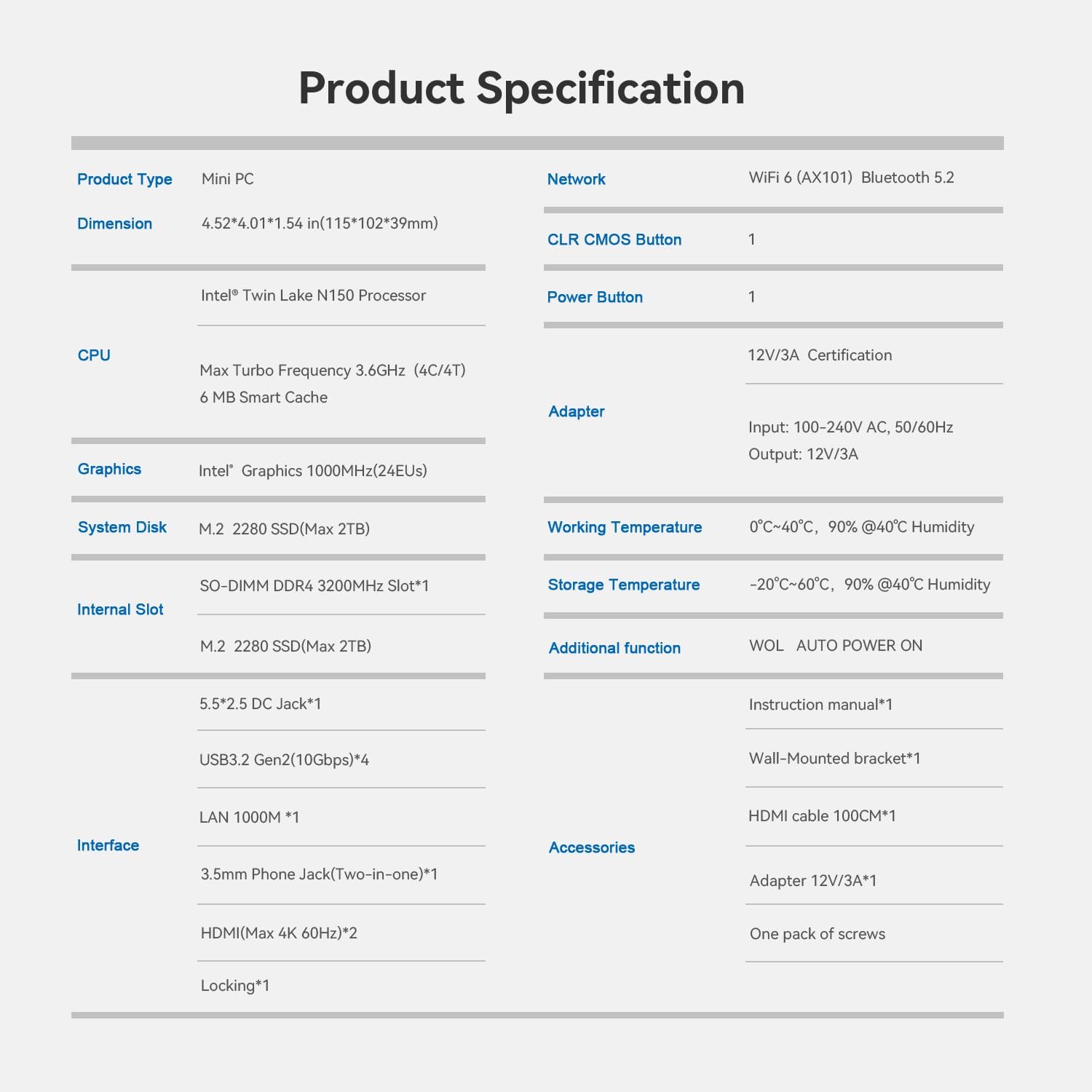• ????【16GB DDR4 и 1TB SSD】Beelink N150 се предлага с 16GB DDR4, способен да се справя с едновременна многозадачност. Вграденият 1TB M.2 SSD поддържа до 2TB (не е включен).