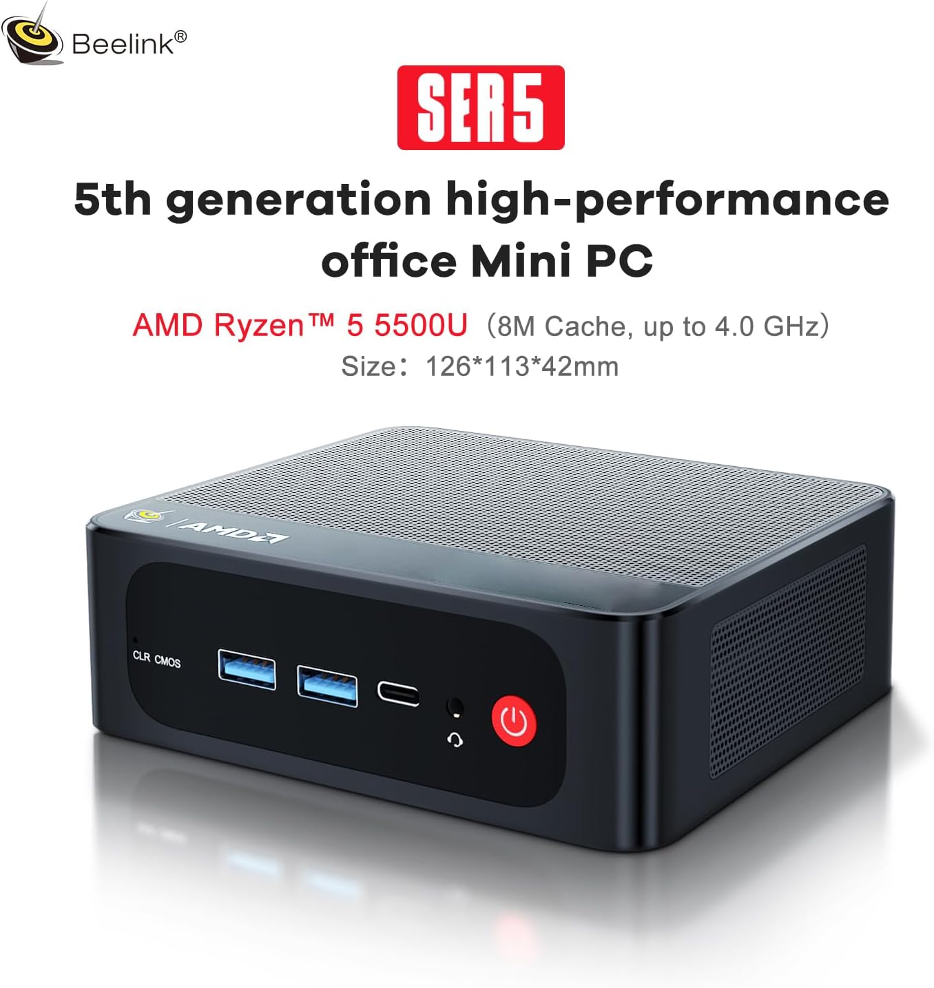 • ????【Мощна производителност】Мини компютърът Beelink SER5 е оборудван с процесор Ryzen 5 5500U (6C/12T, до 4.0GHz), който създава много плавно изживяване за визуално домашно забавление, стрийминг на видео, сърфиране в интернет, работа и леки игри.