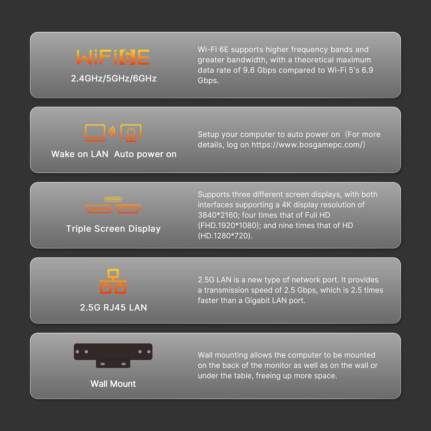 • ✅【WiFi 6E и Bluetooth 5.2 и безжична връзка】Оборудван с безжично предаване WiFi 6E и Bluetooth 5.2. Два LAN порта могат да се използват като софтуерен рутер.