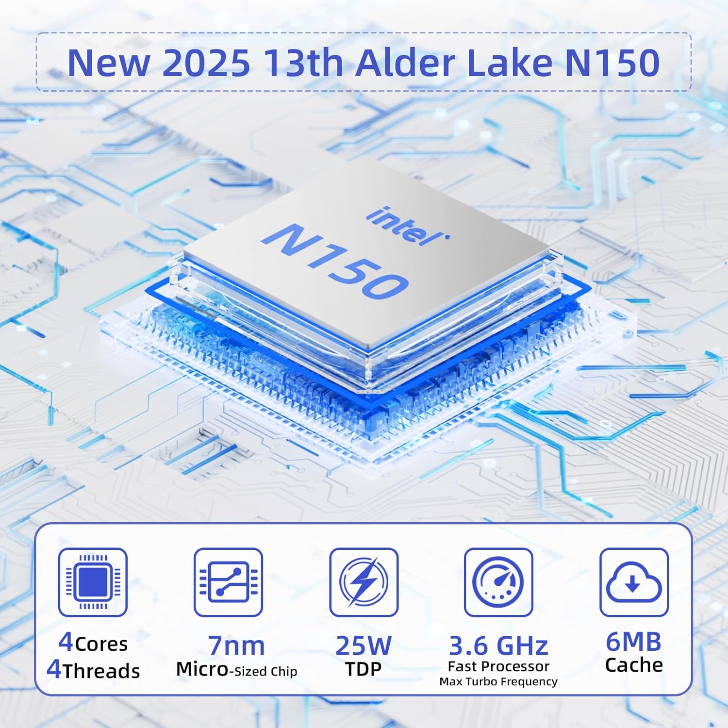 • ????【Авторски права】Най-новият 13-ти процесор Intel Alder Lake N150 (нови издания от 2025 г.). Консумацията на енергия е само 6 W. В сравнение с Intel (N5105/N5100/N5095), производителността на процесора N150 е +40%, а на графичния процесор - +65%.