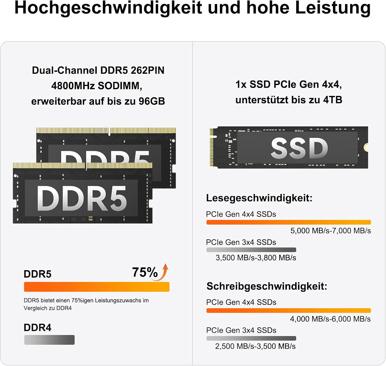 • Rasend schneller Arbeitsspeicher und Speicher - Mit 32 GB DDR5-RAM und einer 1 TB großen SSD sorgt der A6 für verzögerungsfreies Multitasking und schnellen Datenzugriff. Speichern Sie Tausende von Fotos, Musiktiteln oder stundenlange HD-Videos. Die leistungsstarke Kombination aus Arbeitsspeicher und Speicherkapazität macht es ideal für professionelle Aufgaben und private Medienanforderungen.