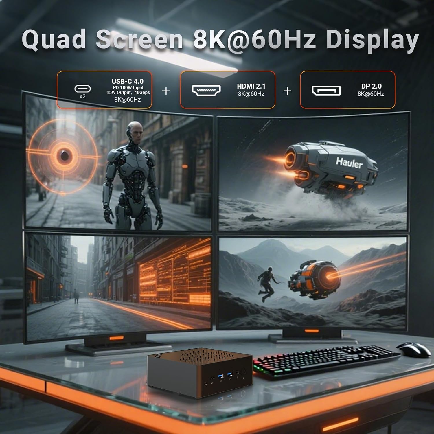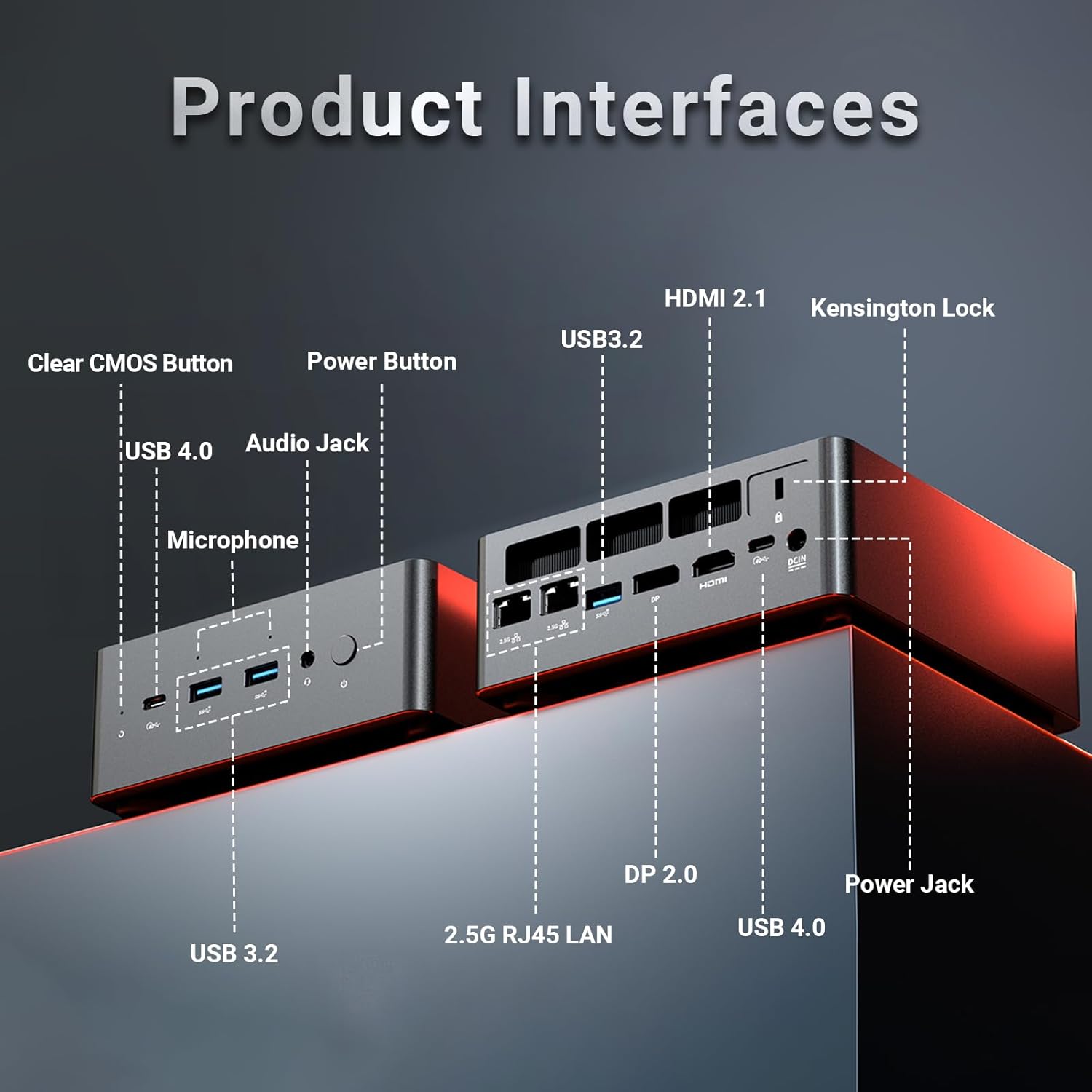 • 【Ефективно охлаждане за непрекъсната работа】 Усъвършенстваната охладителна система с големи медни радиатори гарантира, че мини компютрите остават хладни и работят тихо, дори по време на тежки задачи, осигурявайки оптимална производителност за дълги часове с ниско прегряване или шум.
