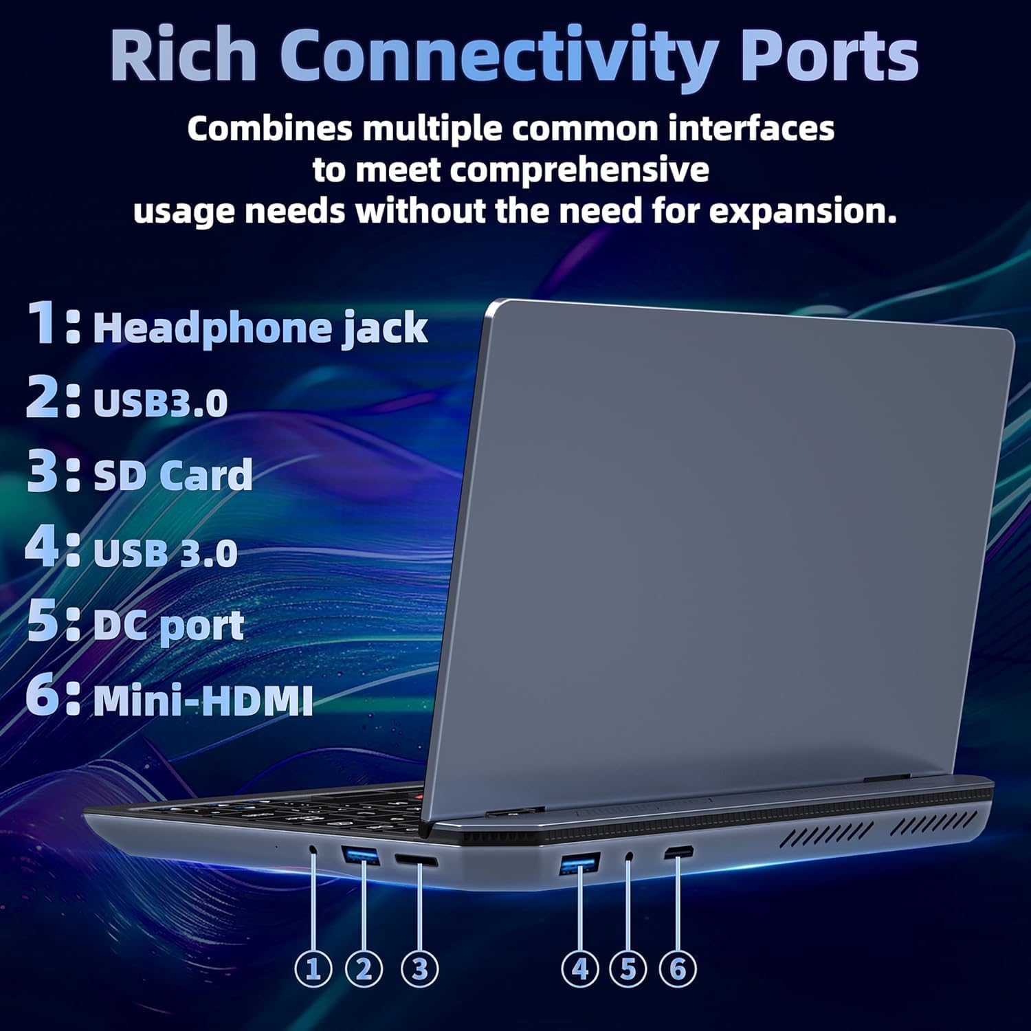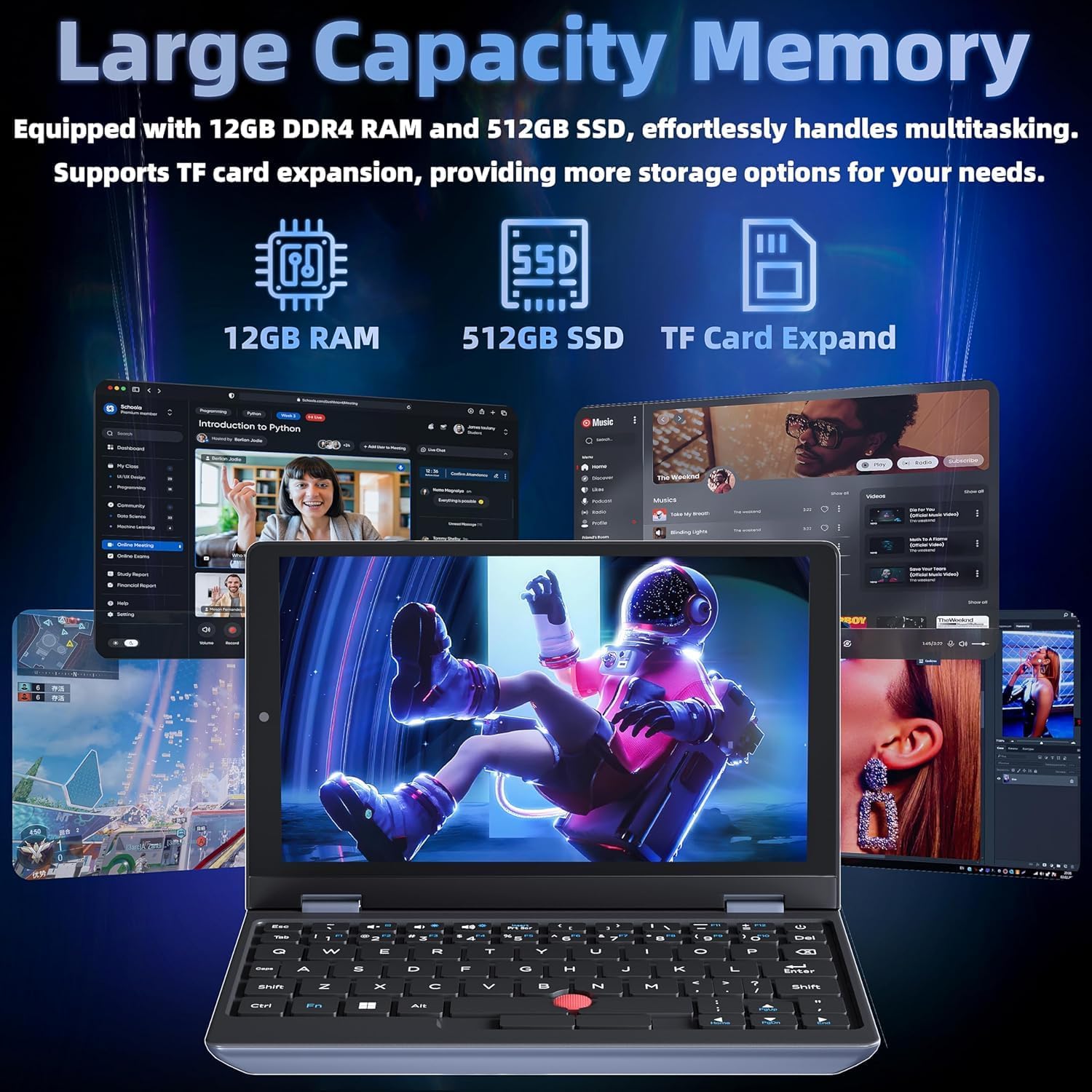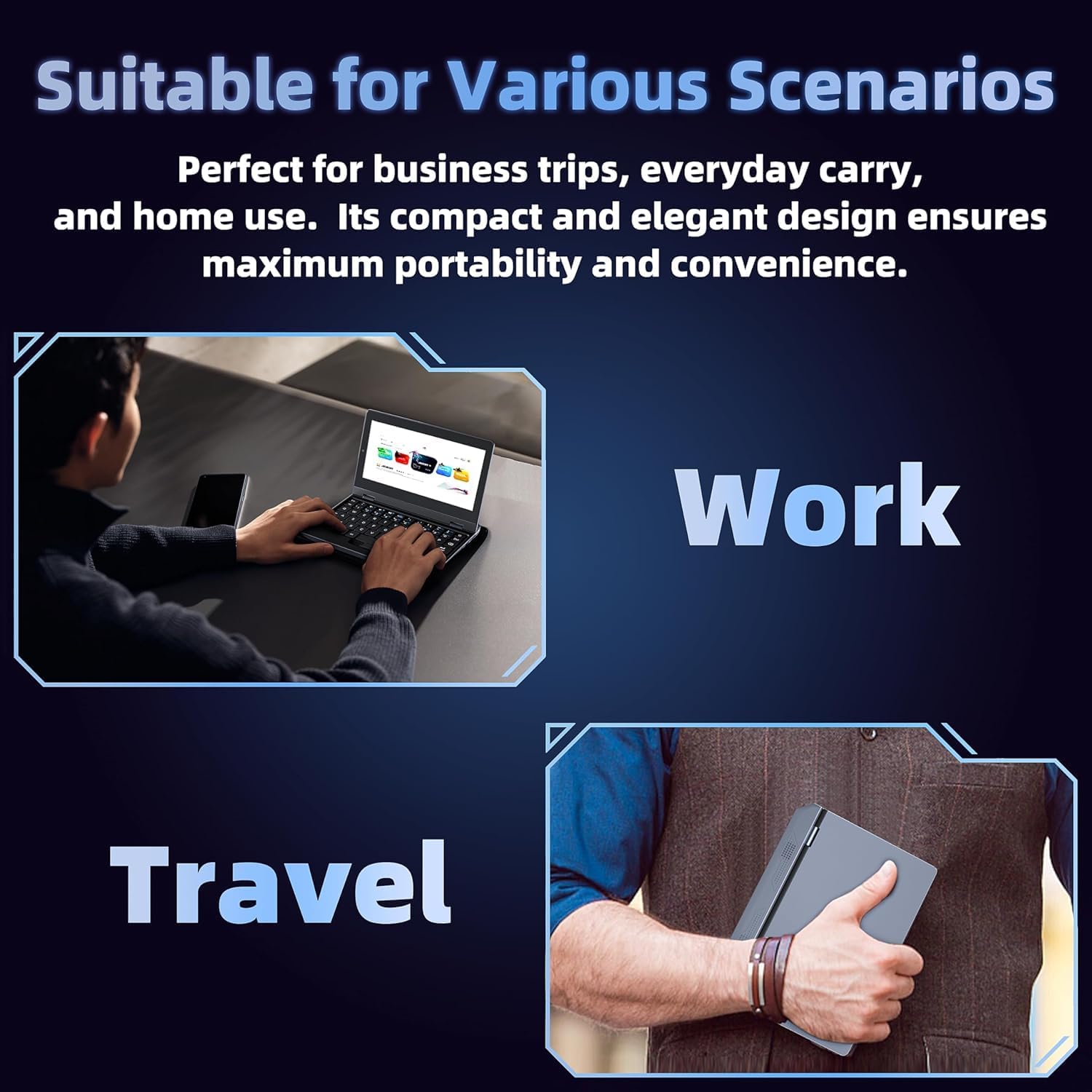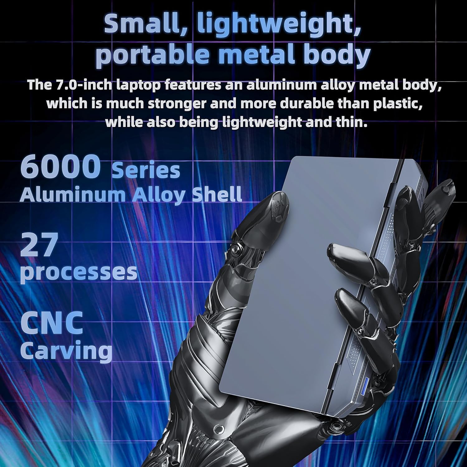 Мини лаптоп Fsjun 2025, 7.0-инчов сензорен екран, Celeron N100 (до 3.4 GHz), 16GB RAM, 1TB SSD, изцяло метален, ултралек, високопроизводителен лаптоп, протектор за немска клавиатура