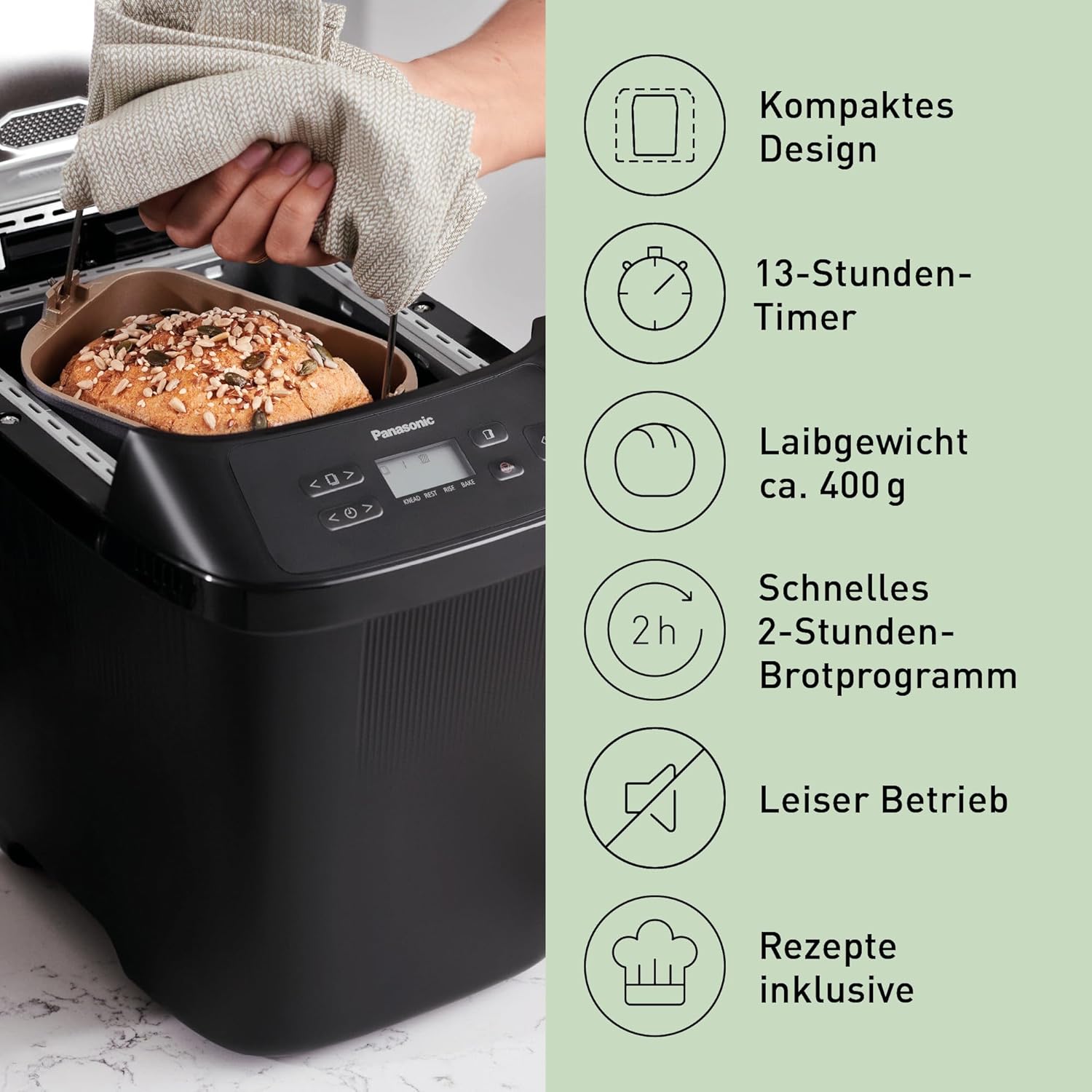 Мини машина за хляб Panasonic SD-PN100KXE - Компактна машина за хляб с 18 автоматични програми, опции без глутен, двойни температурни сензори, система за месене, лесна за употреба